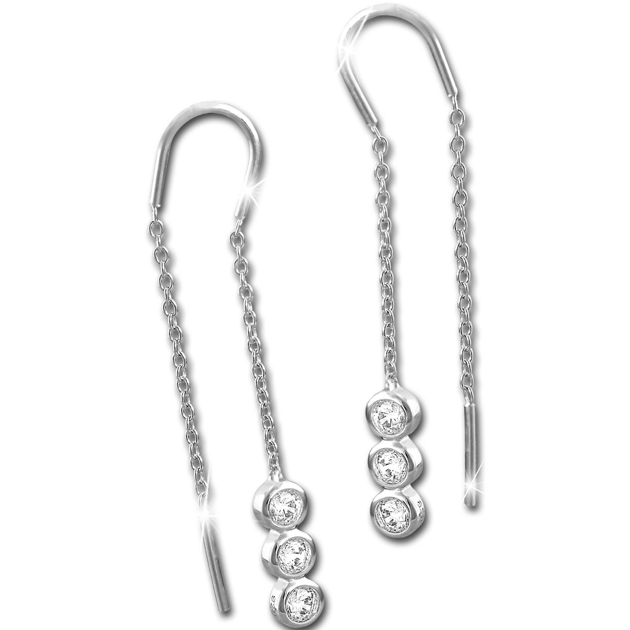 SilberDream Damen Ohrhänger weiß 3 Steine Zirkonia 925 Silber Ohrringe GSO477W