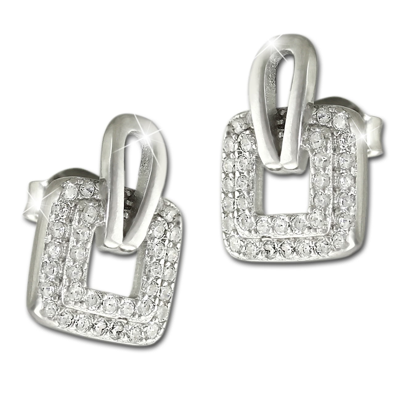 SilberDream Damen Ohrstecker weiß Square Zirkonia 925 Silber Ohrringe GSO485W