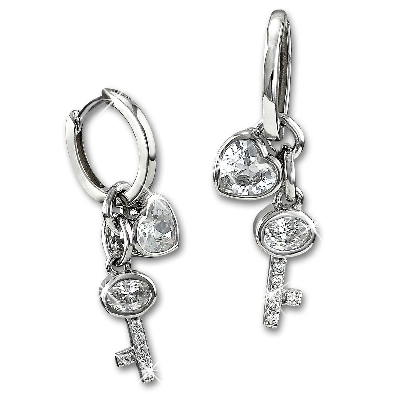 SilberDream Damen Creolen Schlüssel/Herz Zirkonia 925 Silber Ohrringe GSO506W