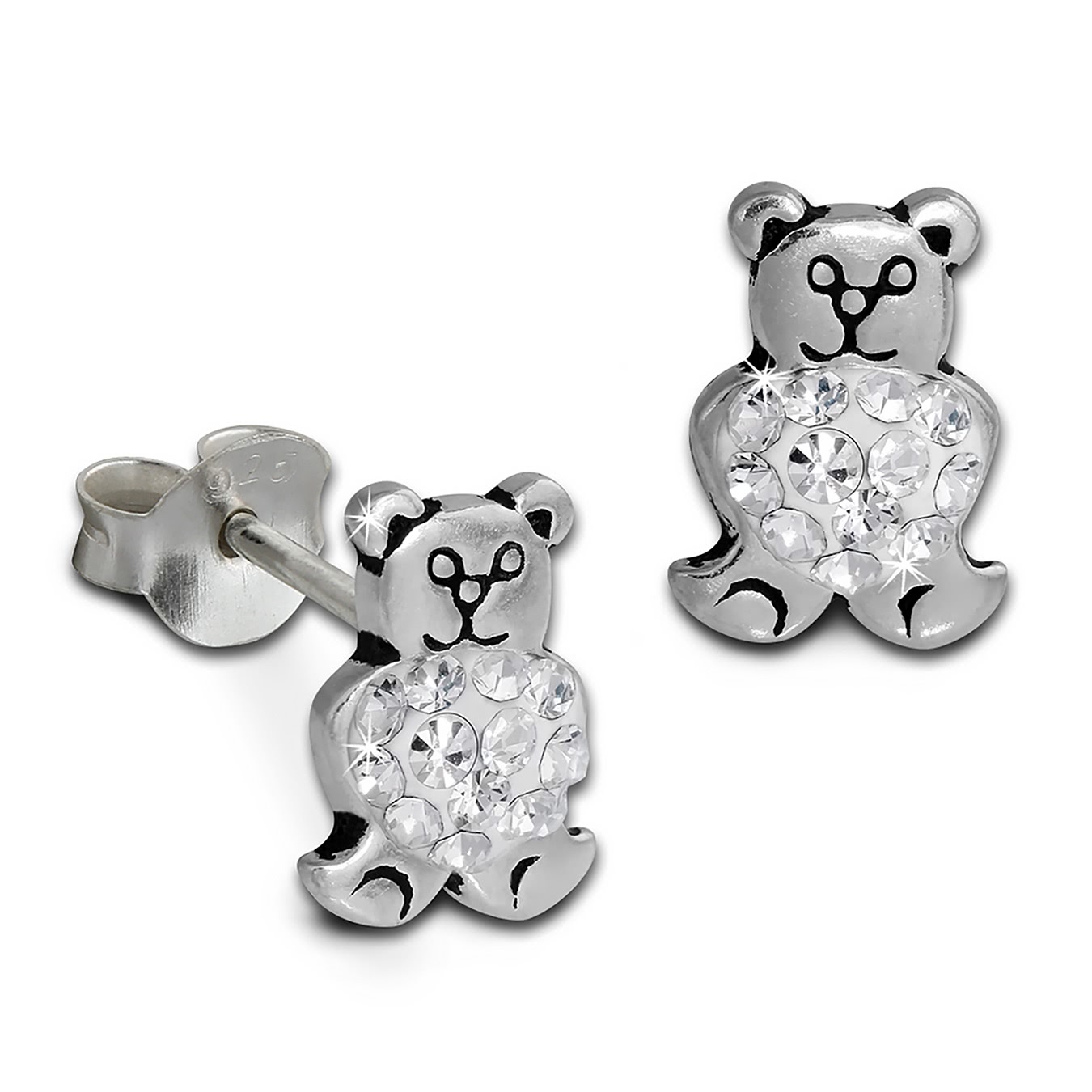 SilberDream Ohrstecker weiß Knuddelbär Zirkonia 925 Silber Ohrringe GSO607W