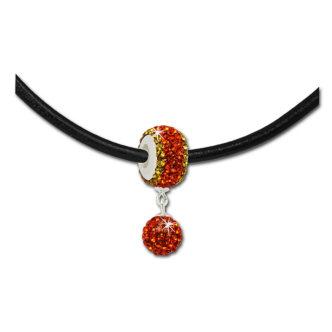 SilberDream Zirkonia Set Kette Bead Silber Leder orange gelb schwarz GSS045O