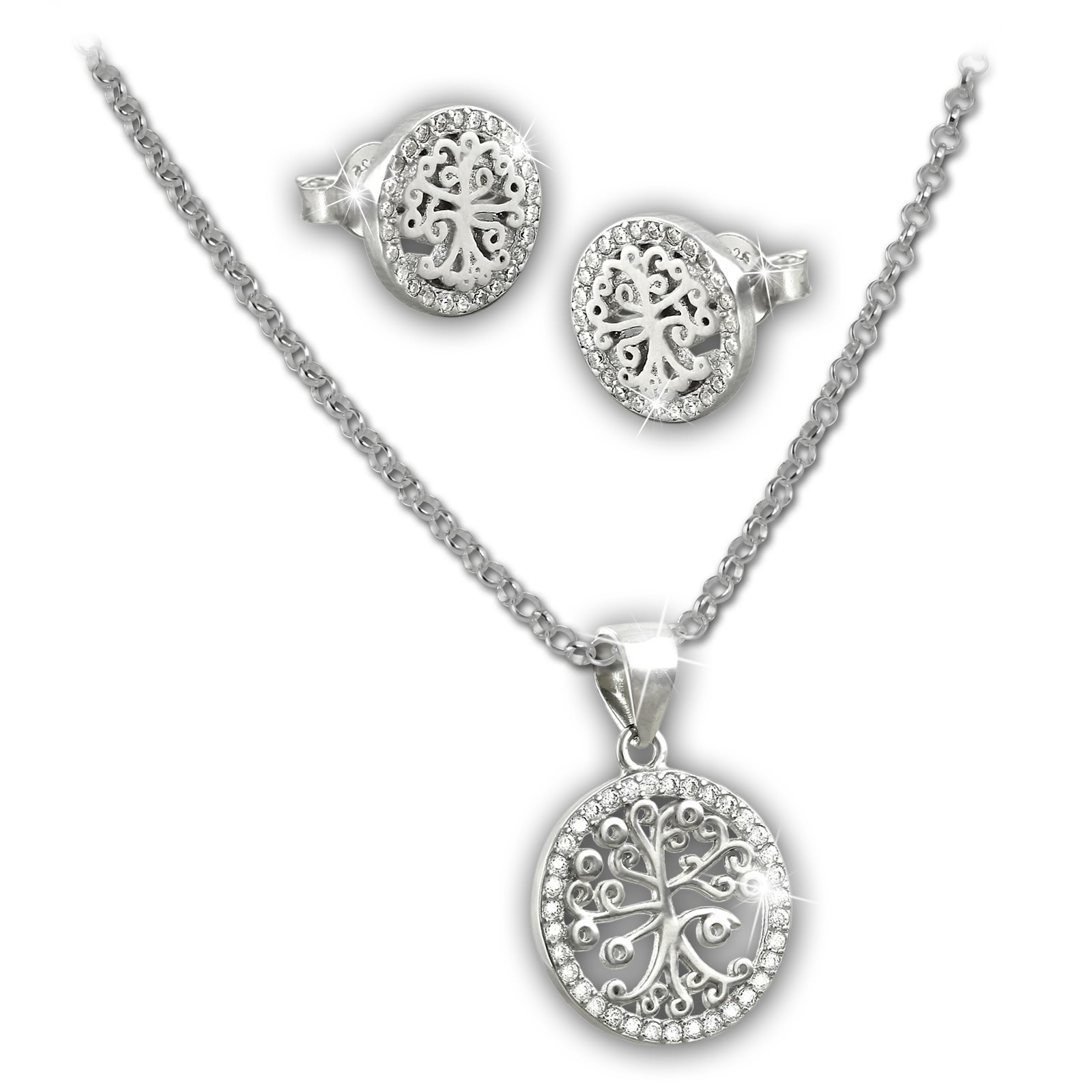 SilberDream Damen Zirkonia Set Kette Anhänger Ohrringe Silber weiß GSS402W