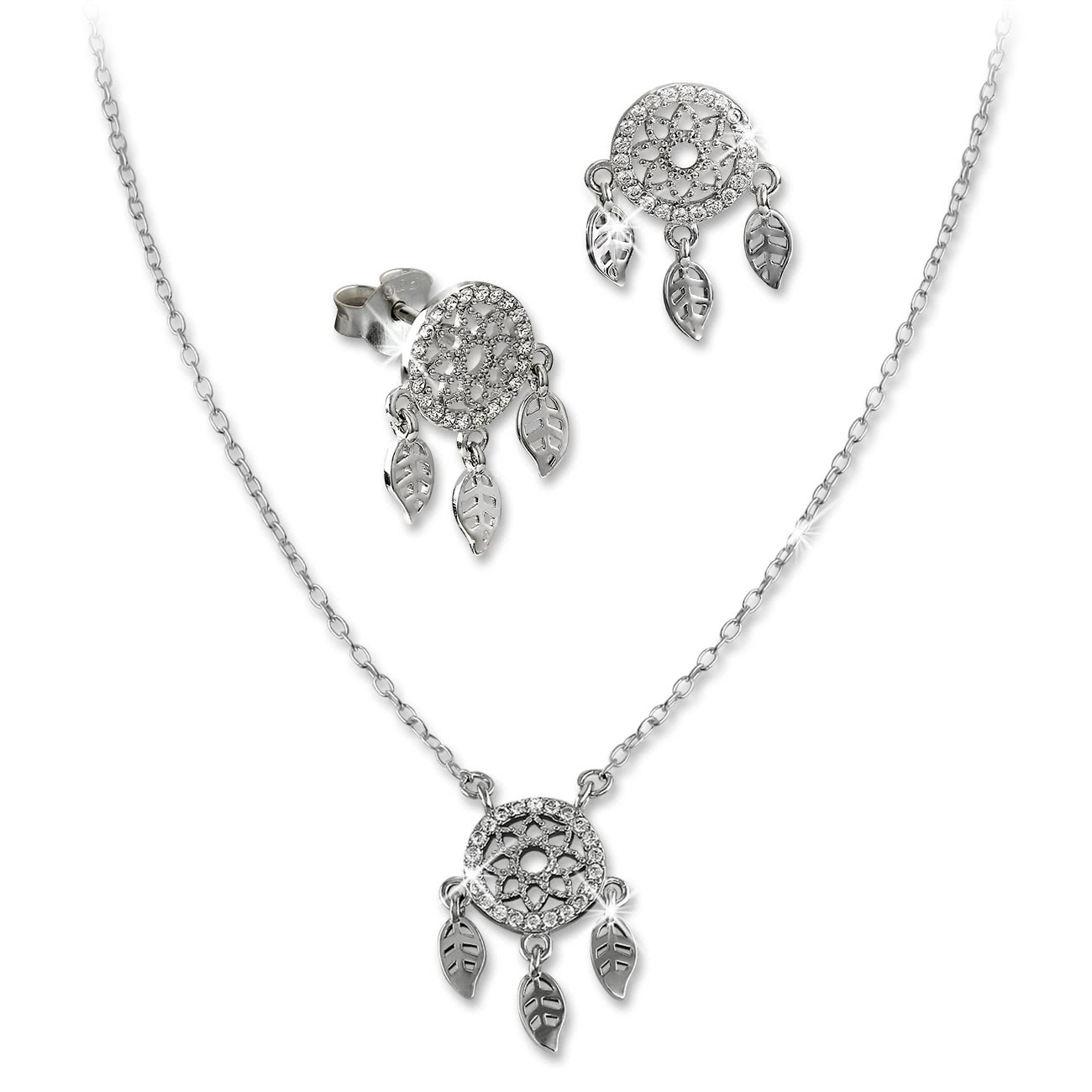 SilberDream Damen Zirkonia Set Kette Anhänger Ohrringe Silber weiß GSS406W