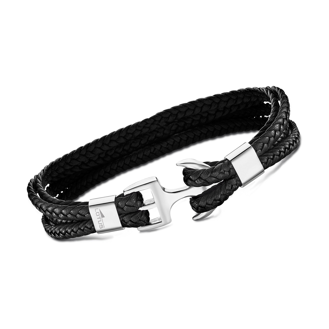 LOTUS Style Herren Anker Armband LS2006-2/1 geflochten Leder schwarz JLS2006-2-1
