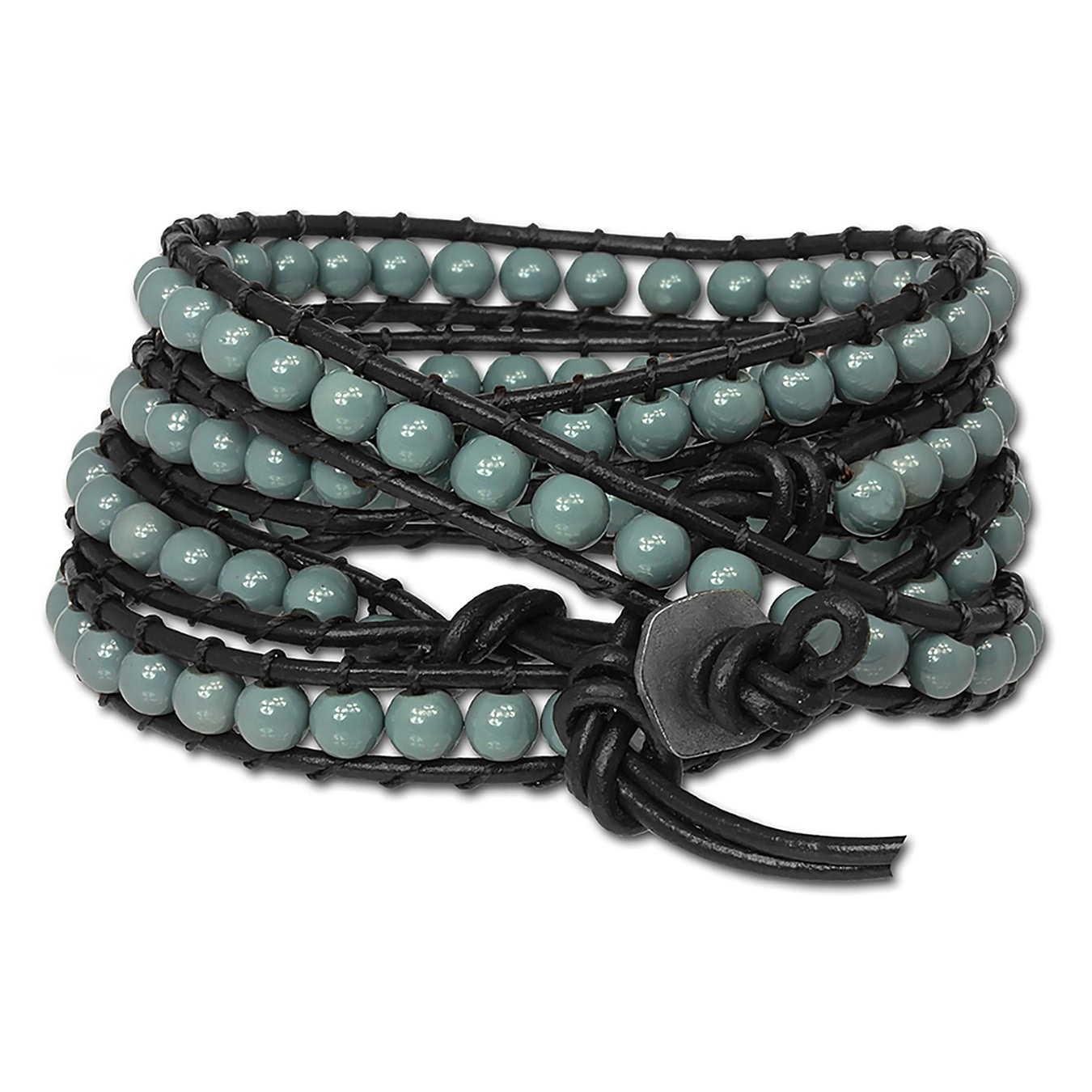 SilberDream Damen Armband Glas Kugel Leder -Rindsleder- schwarz grau LA2624K