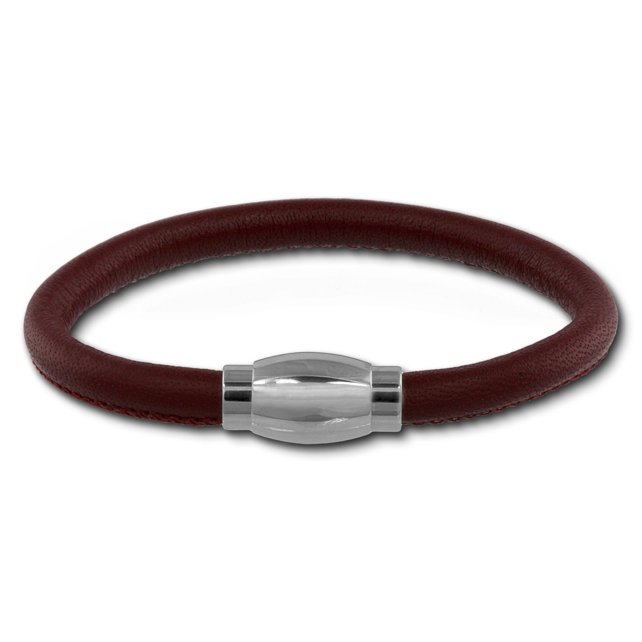 SilberDream Damen Herren Armband Leder Edelstahl Armschmuck dunkelrot LAB0918