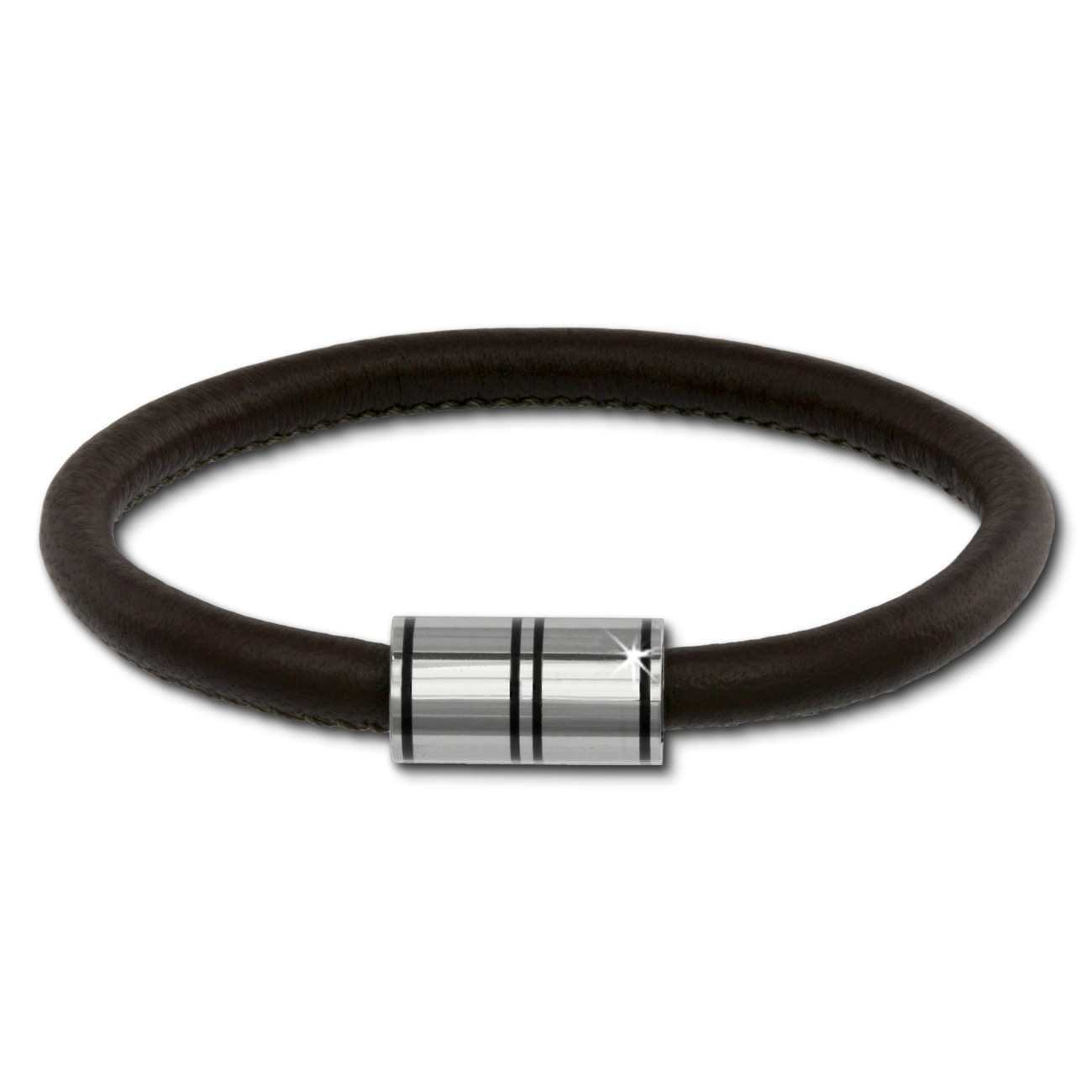 SilberDream Damen Herren Armband Leder Edelstahl Armschmuck dunkelbraun LAB1120