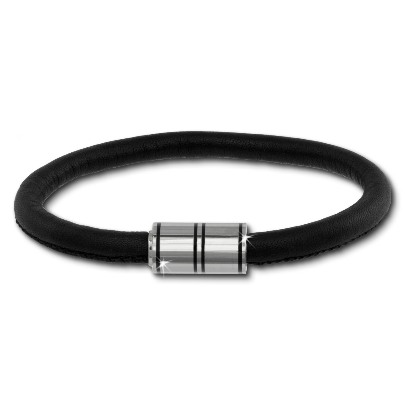 SilberDream Damen Herren Armband Leder Edelstahl Armschmuck schwarz LAB1318