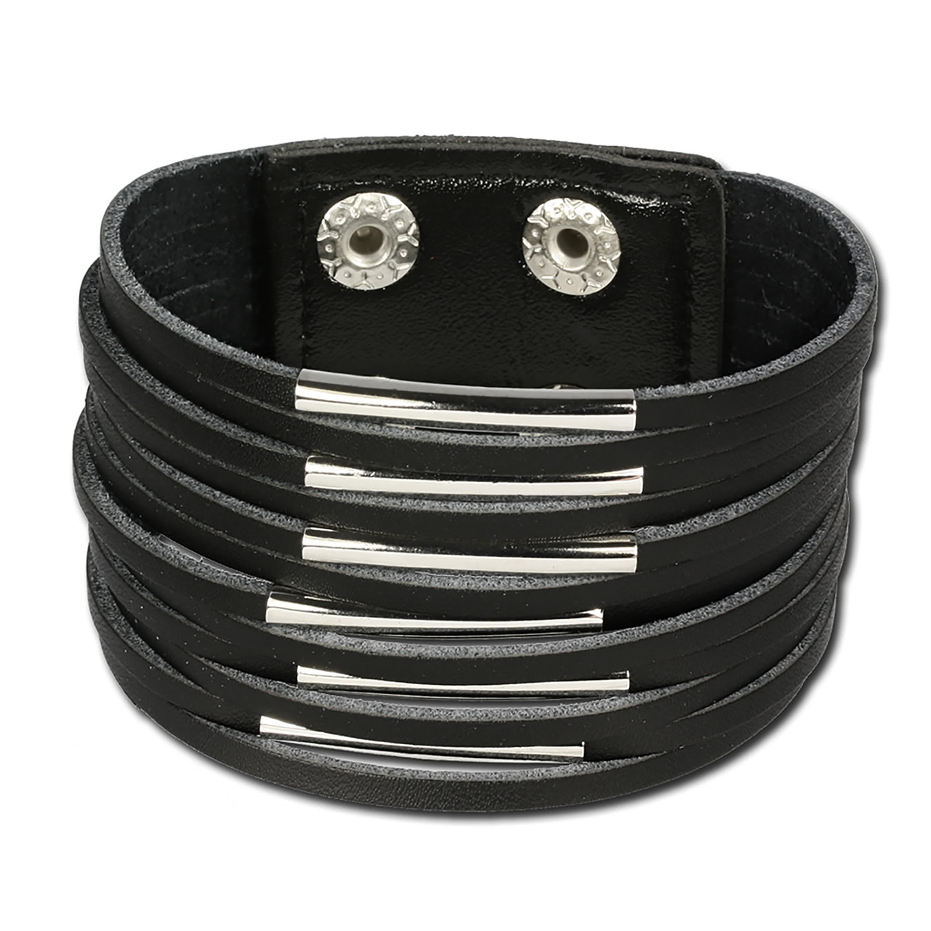 SilberDream Damen Herren Armband Metallverzierung Leder Schmuck schwarz LAC153S