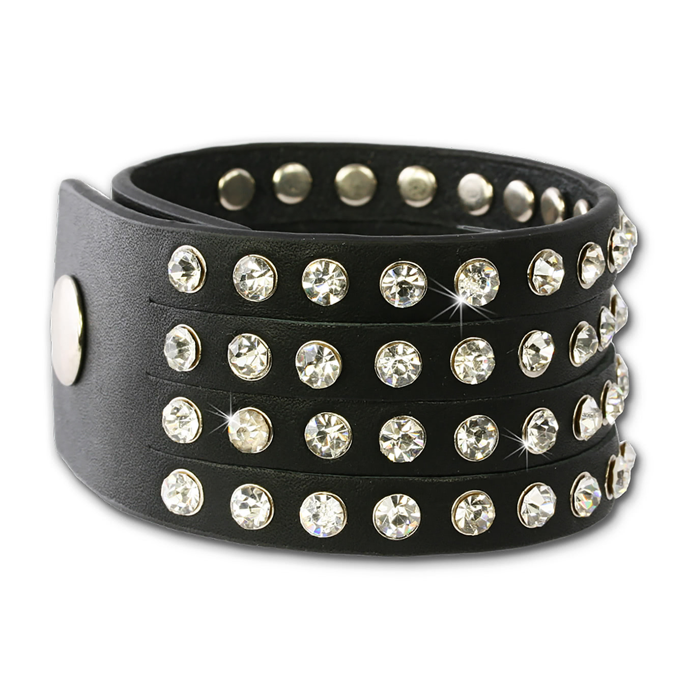 SilberDream Damen Frauen Armband Zirkonia Leder Armschmuck schwarz LAP230S