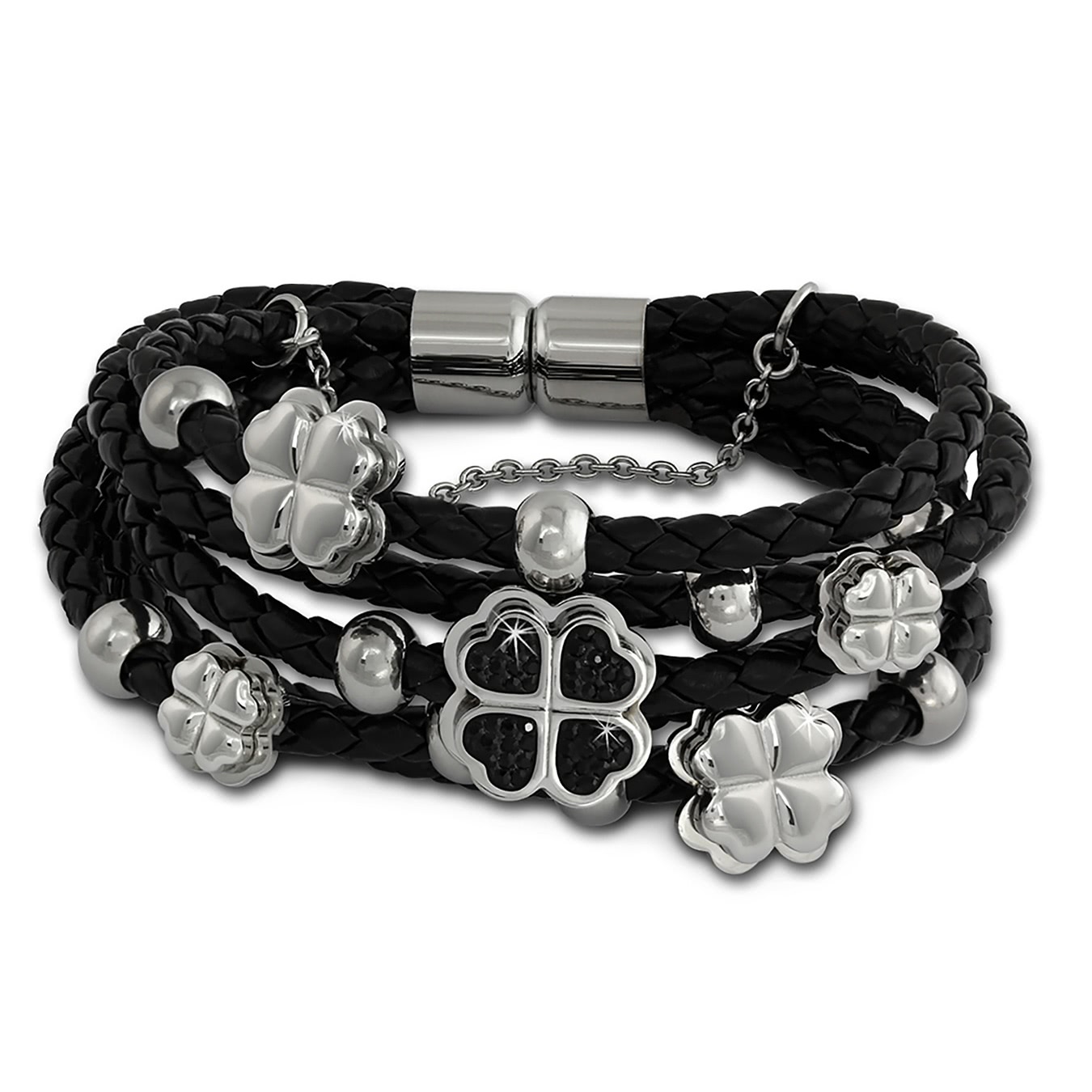 Amello Damen Frauen Armband Zirkonia Herz-Blume Leder Edelstahl schwarz LAQ007S9