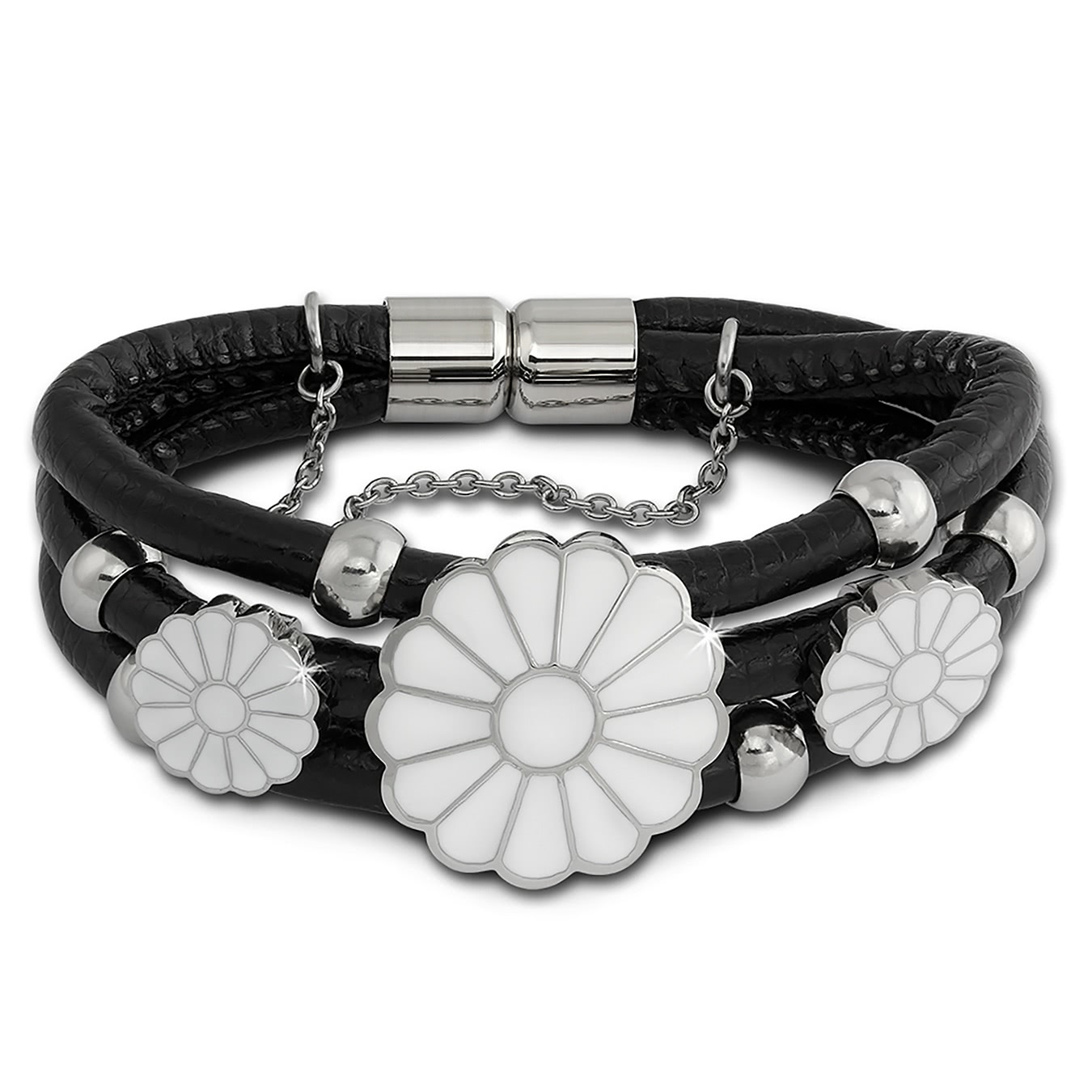 Amello Damen Armband Verschluss Leder Edelstahl schwarz silber weiß LAQ021S1