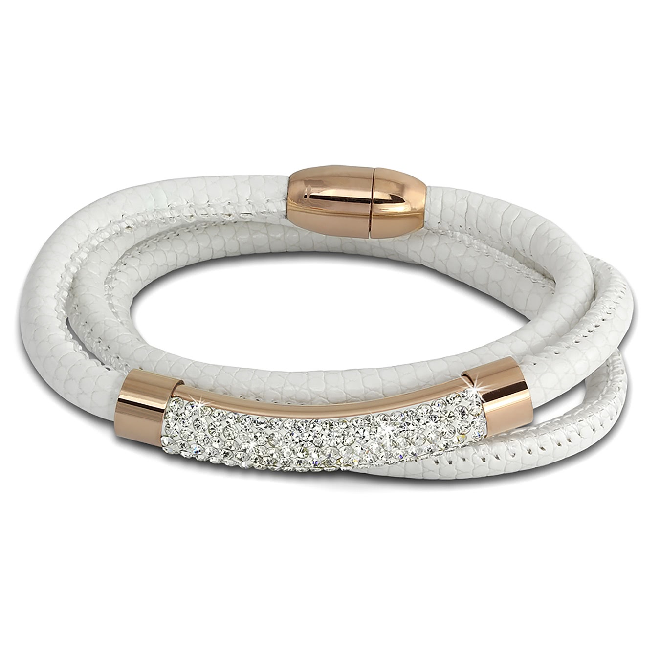 Das Produkt besteht aus Leder, Edelstahl und 333er Rosegold vergoldet (Edelstahl (Stainless Steel) und vergoldet (Roségold 333)).