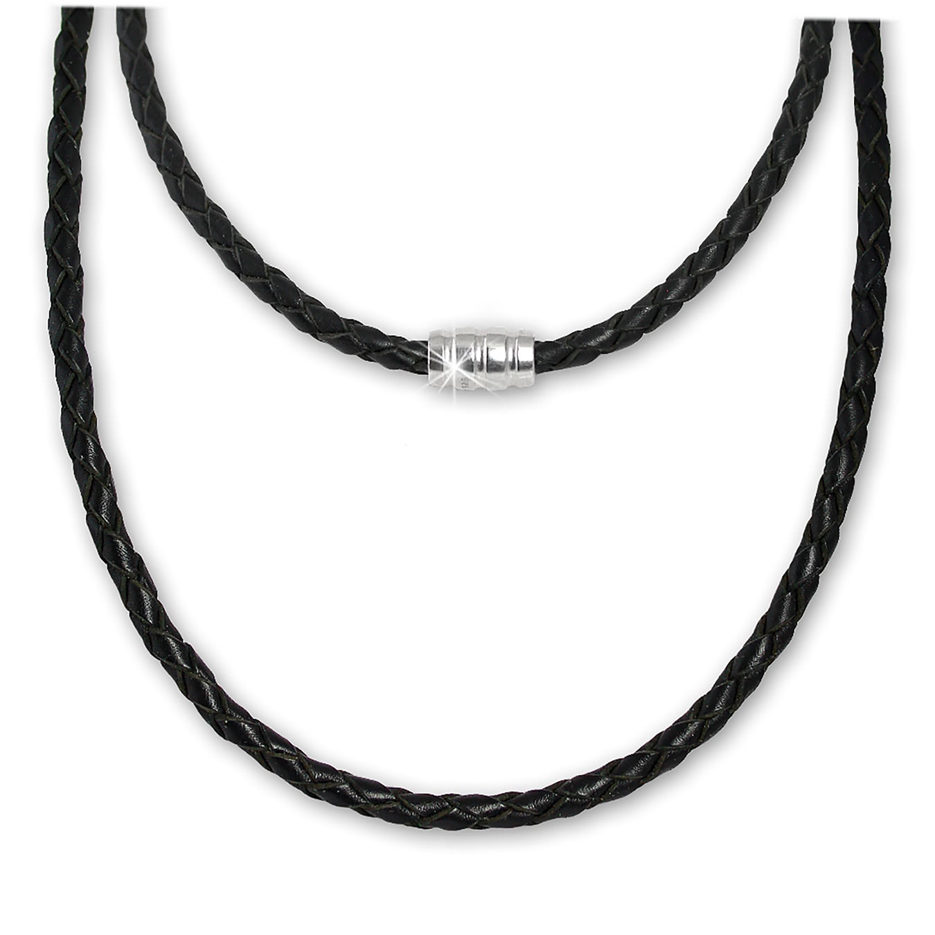 SilberDream Leder Kette geflochten 45cm schwarz mit 925er Verschluss LS0408