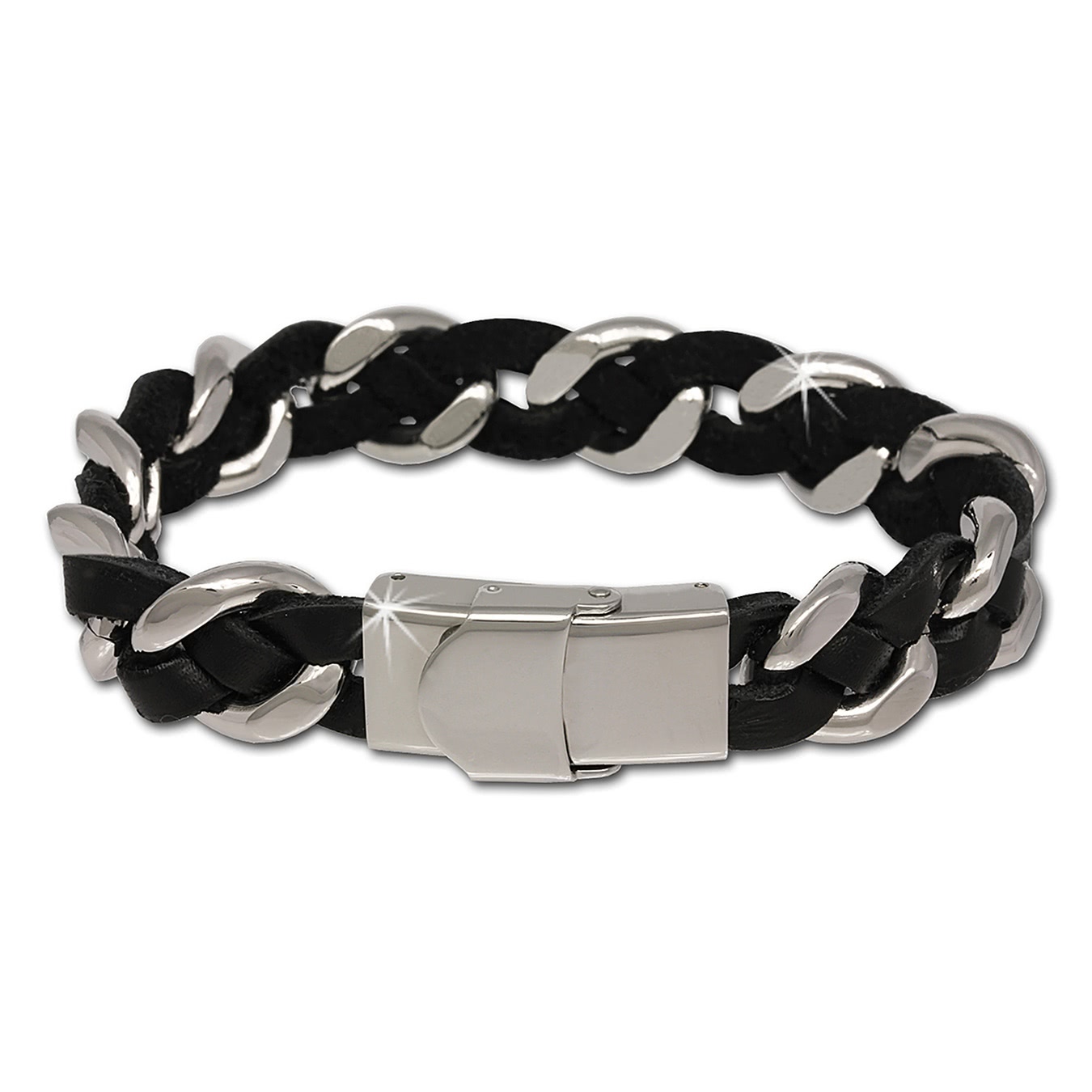 SilberDream Leder/Stahl - Armband Fantasie geflochten schwarz LS5002