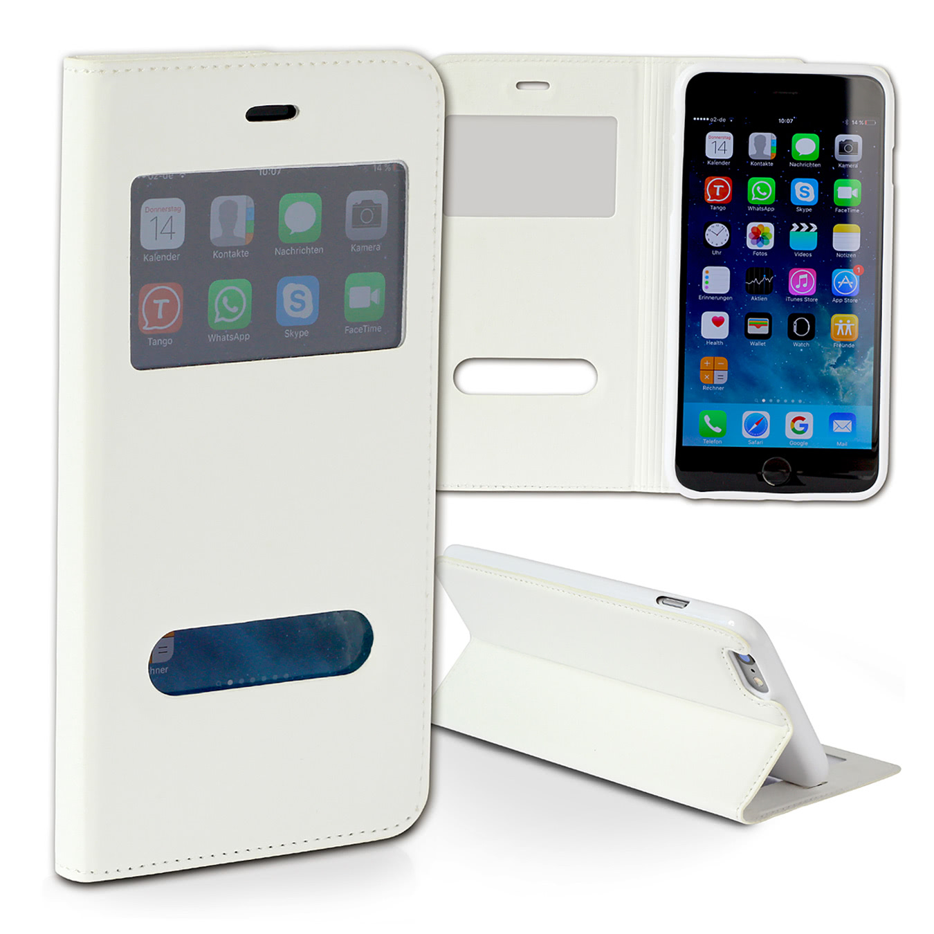 Kurzbeschreibung: DrachenLeder Handyhülle Kunstleder weiß iPhone 6 Plus Case Infofenster OME101K