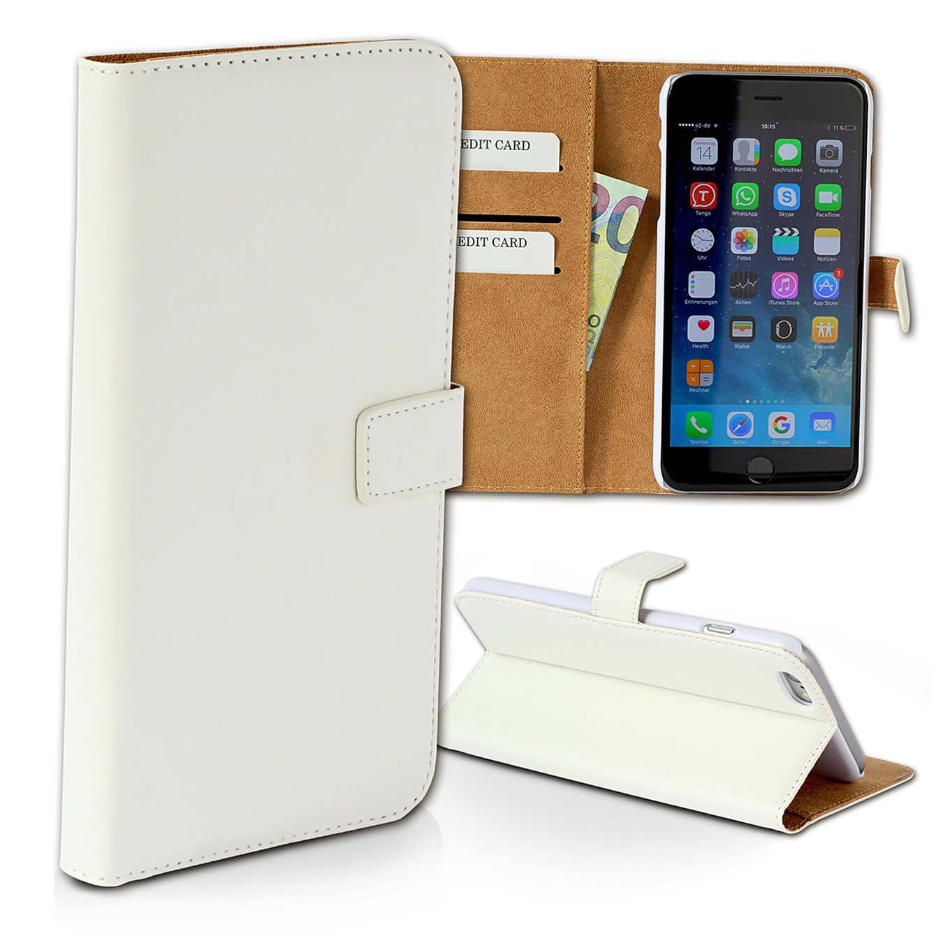Kurzbeschreibung: DrachenLeder Handyhülle Kunstleder weiß iPhone 6+ / 6S+ Wallet Case OME103K