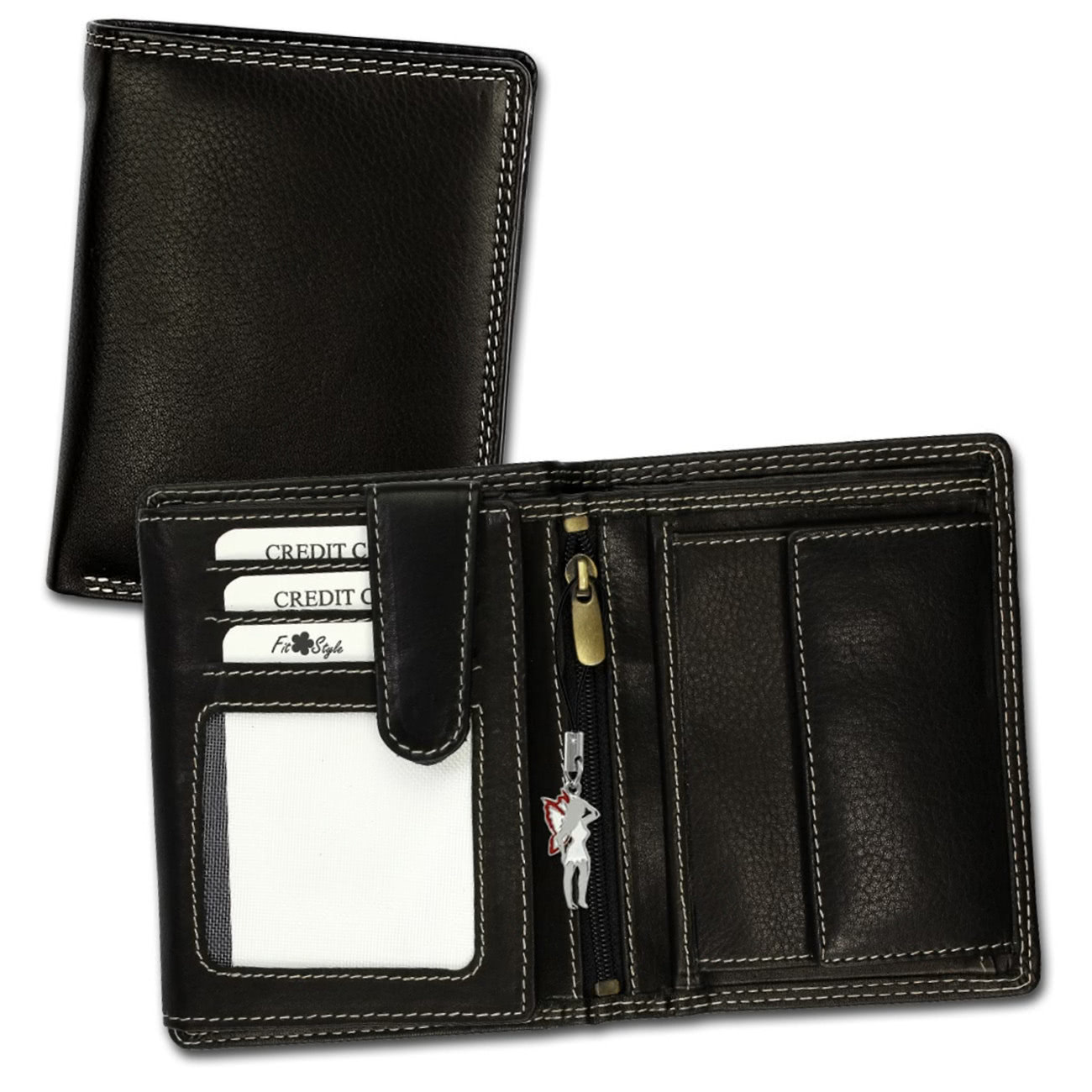 Kurzbeschreibung: Geldbörse Hochformat schwarz Hunter-Echtleder-Portemonnaie