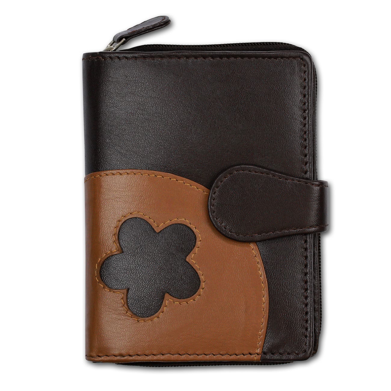 DrachenLeder Brieftasche braun Portemonnaie Leder Blume Damen OPS102N