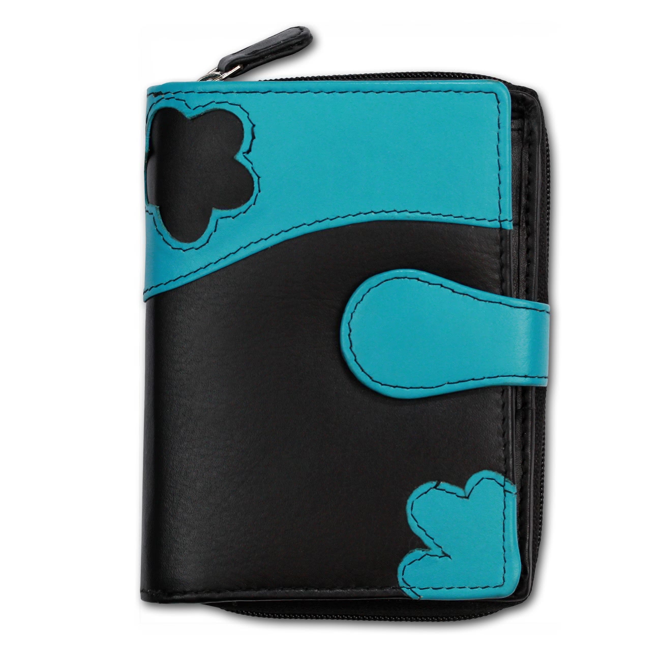 DrachenLeder Brieftasche schwarz türkis Portemonnaie Leder OPS103S