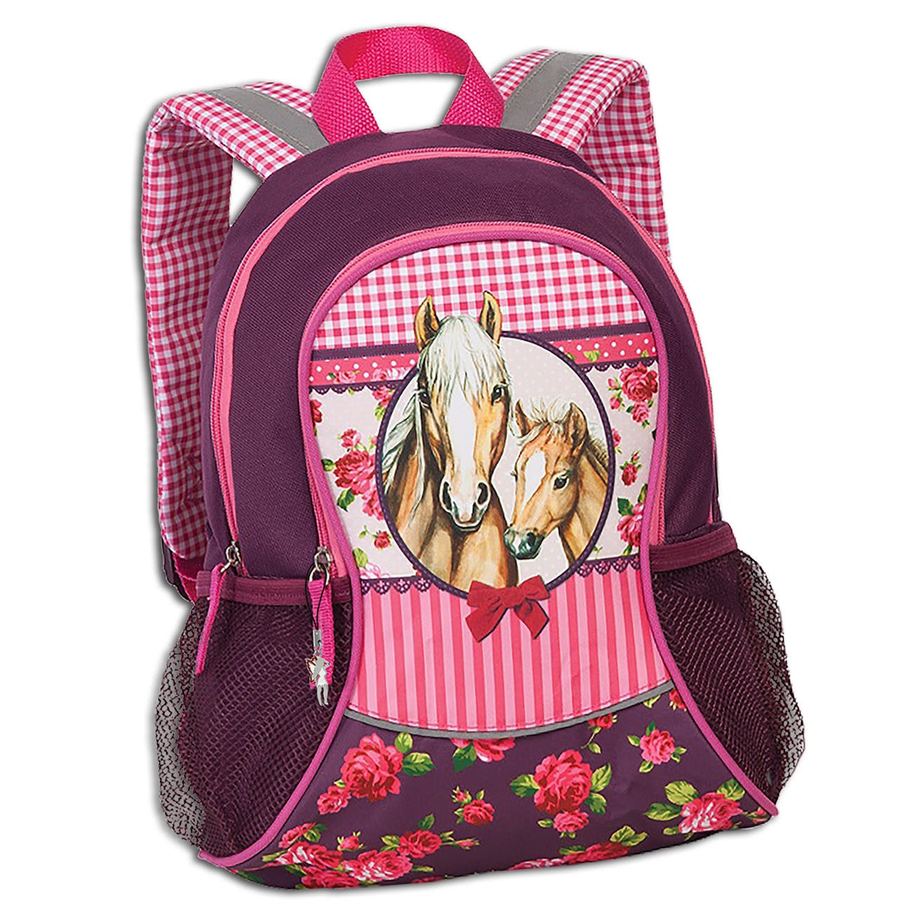 Fabrizio Kinderrucksack lila, pink Pferde mit Netztaschen Polyester ORI212V