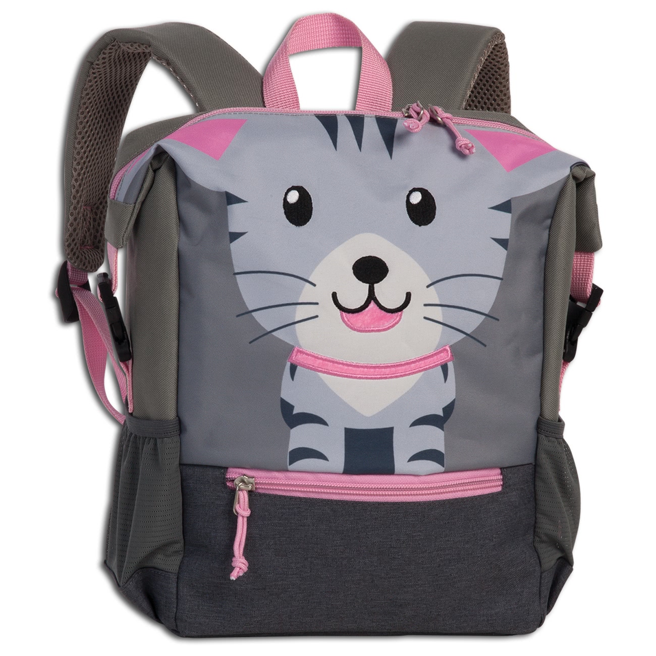 Go Green Fabrizio Kinderrucksack grau, recycelt mit Netztaschen Polyester Katze ORI220K