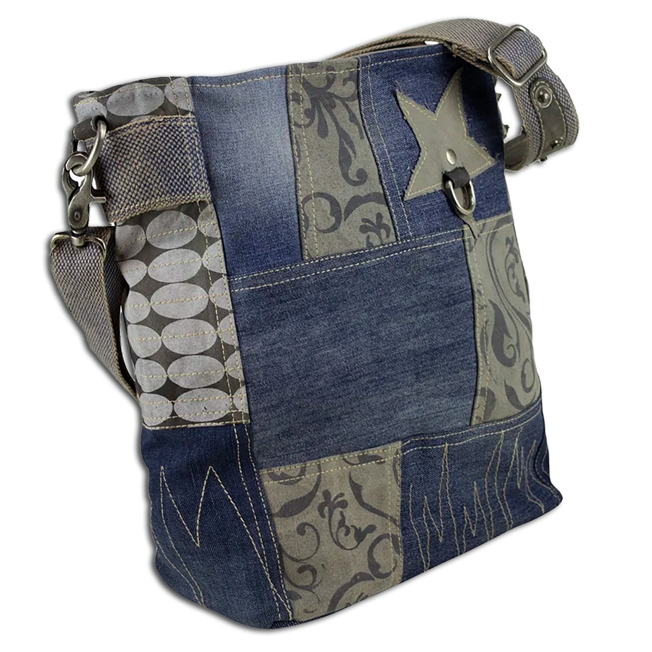 Das Produkt besteht aus Canvas, Jeans und Leder (Echtes Leder).