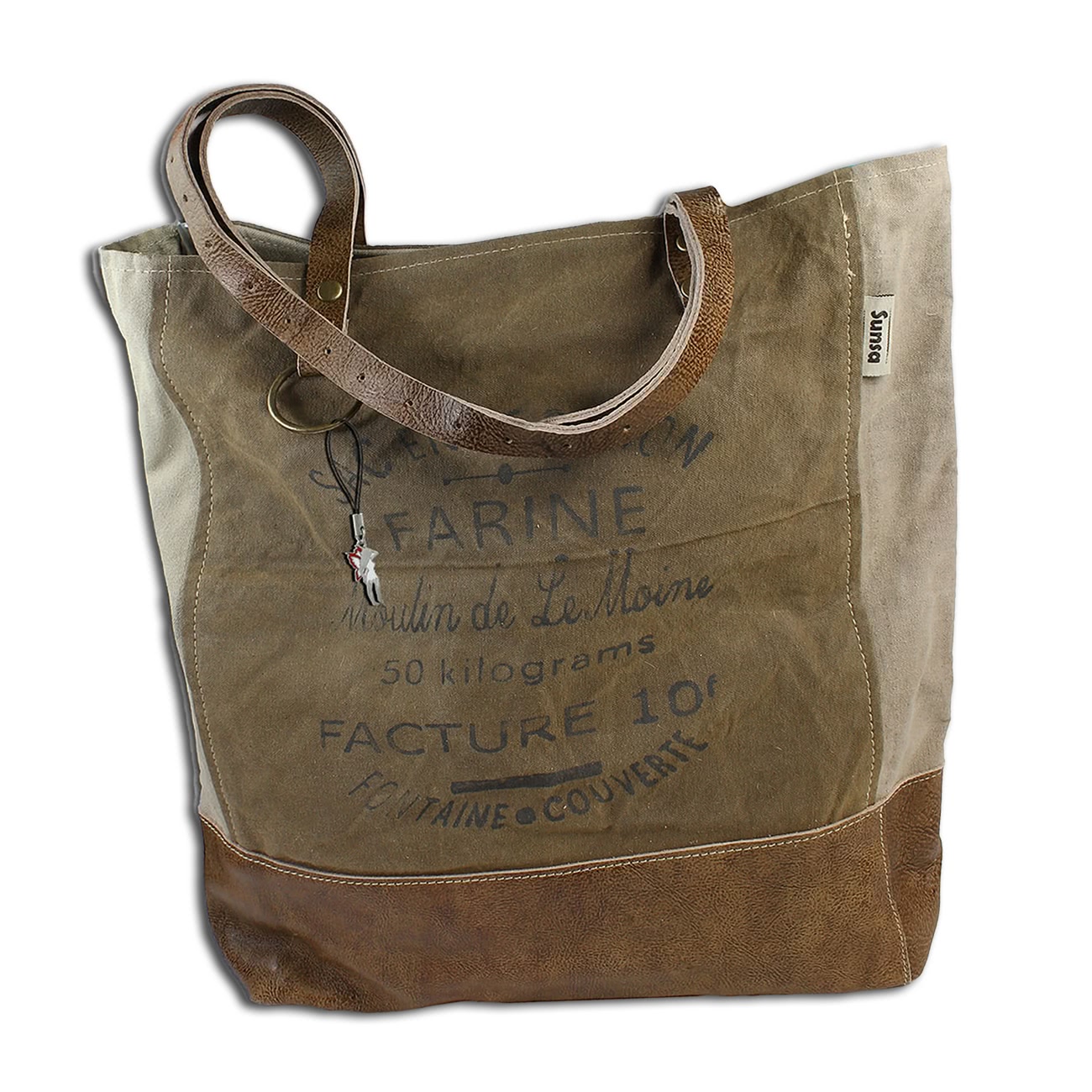 Sunsa Canvas Leder braun Tasche Shopper Jugend Damen OTA208N