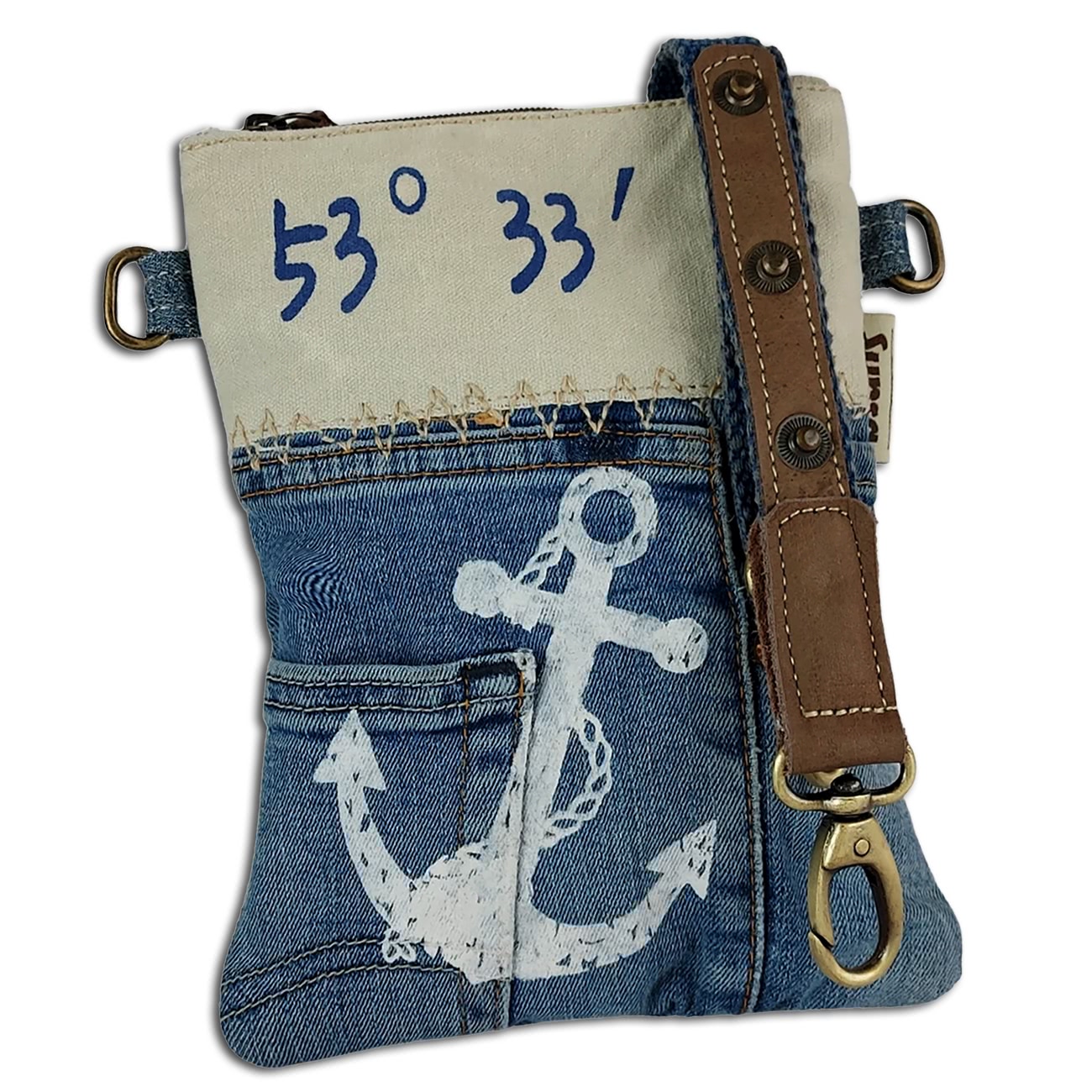 Das Produkt besteht aus Canvas, recycelte Jeans und Leder (Jeansstoff).