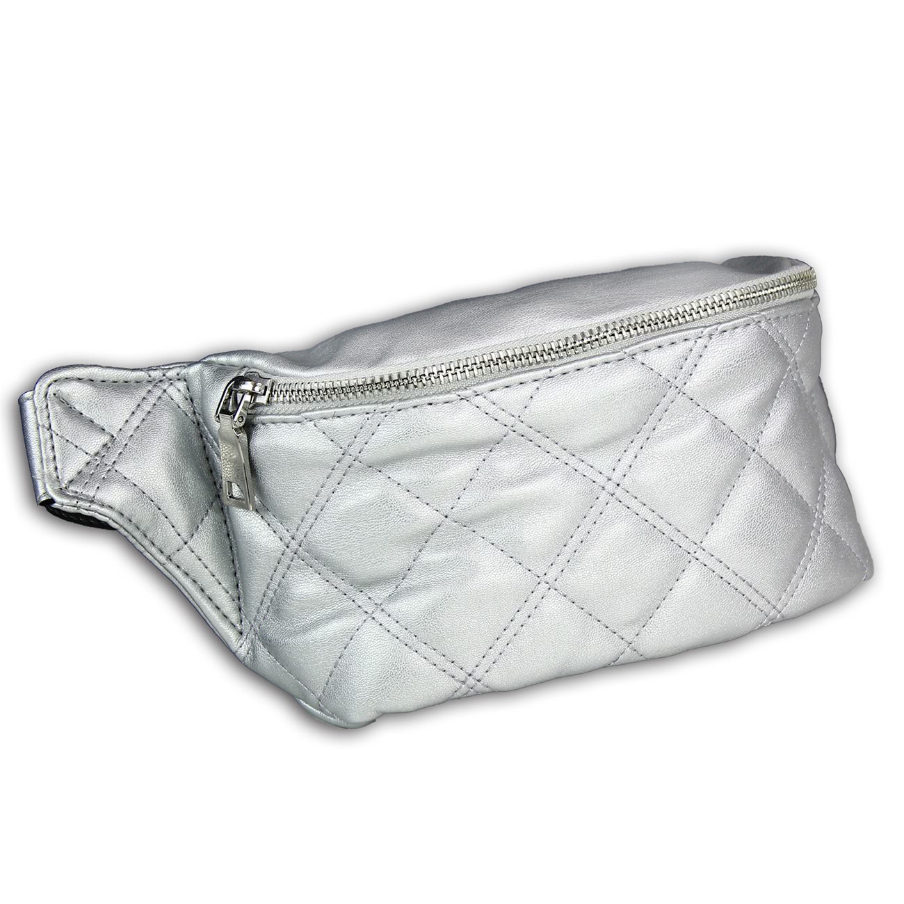 Glüxklee Belt Bag silber Kunstleder Bauchtasche mit Ziernähte gesteppt OTD5022I