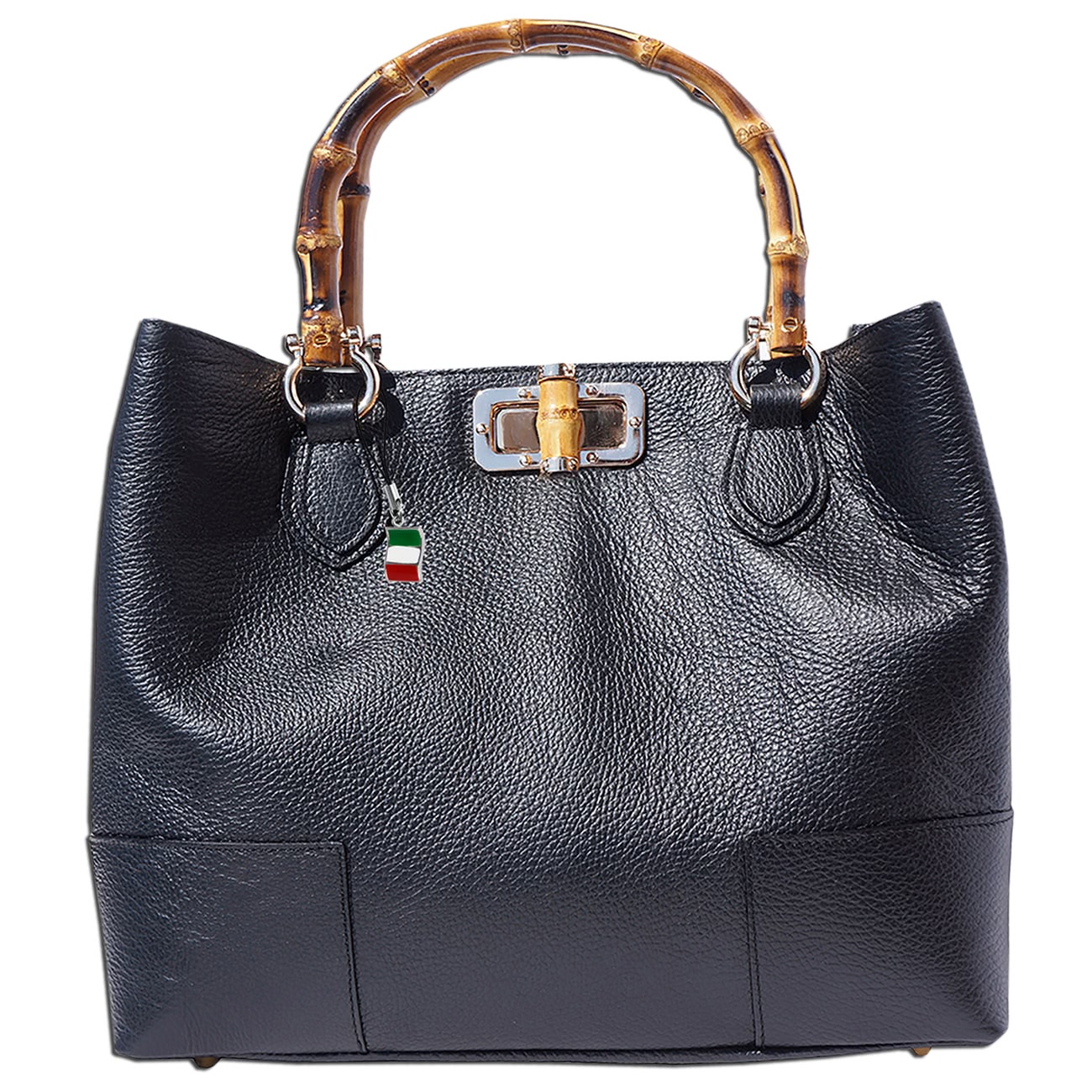 Florence Echtleder schwarz Henkeltasche mit Holz OTF126S