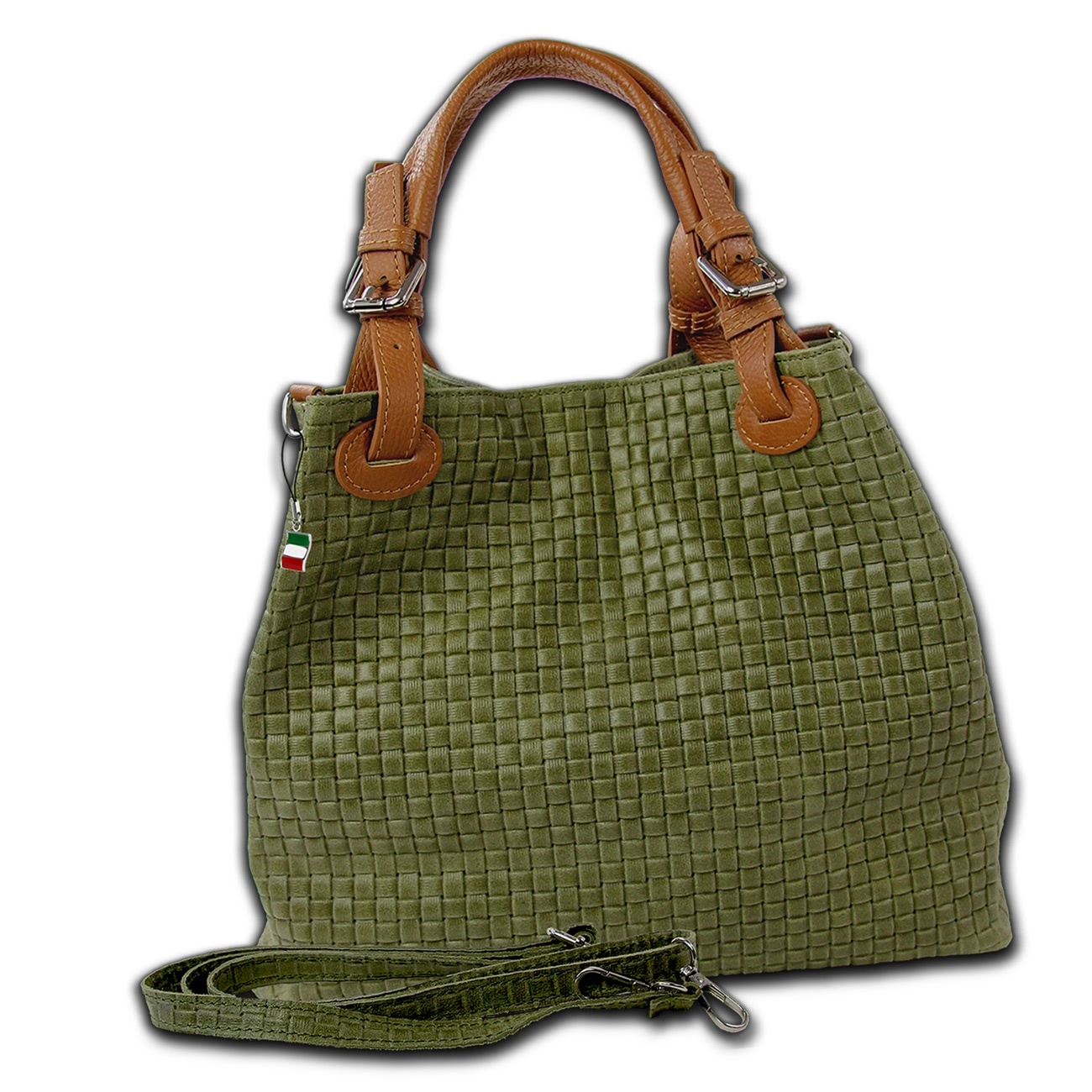 Florence Damen Handtasche Echtleder olivgrün Flechtmuster OTF164G