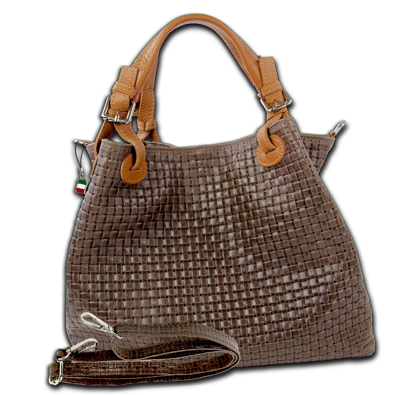 Florence Damen Handtasche Echtleder dunkelbraun Flechtmuster OTF164N