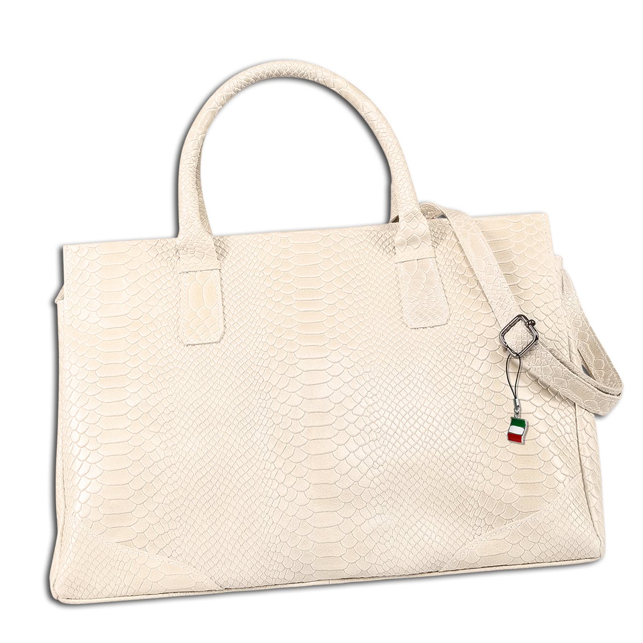 Florence Damen Henkeltasche Echtleder Tote Bag beige Schlangenprägung OTF172I1