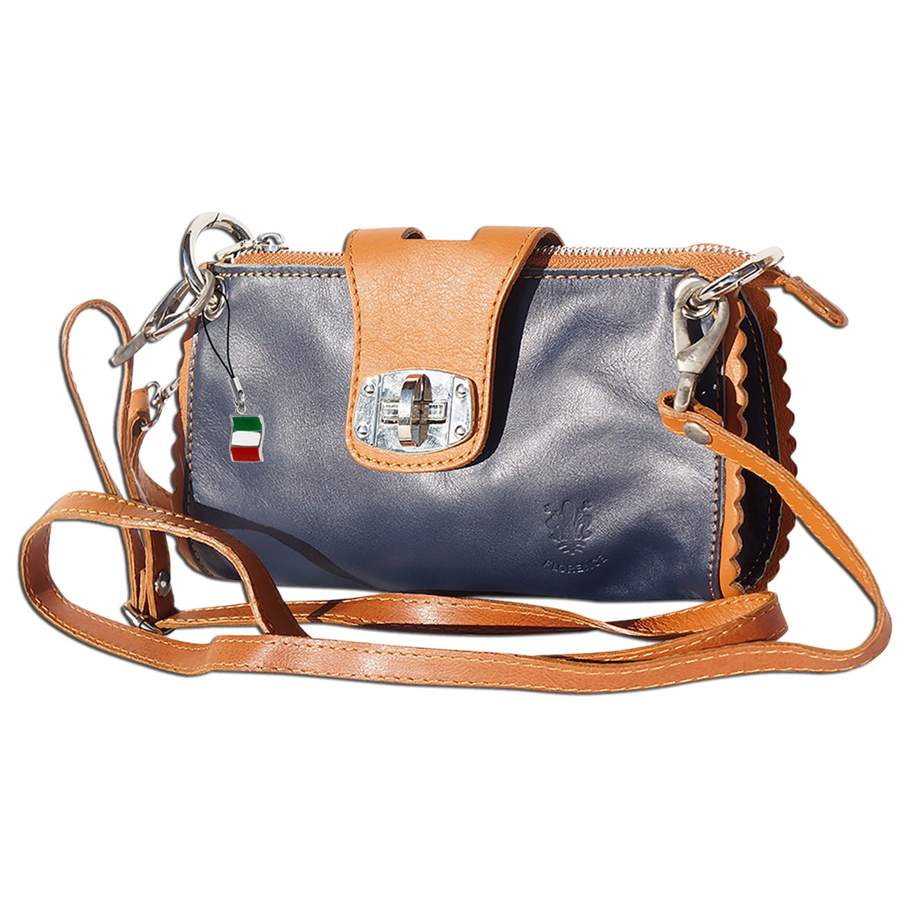 Florence Leder blau tan Tasche Abendtasche Wristlet Damen OTF801B