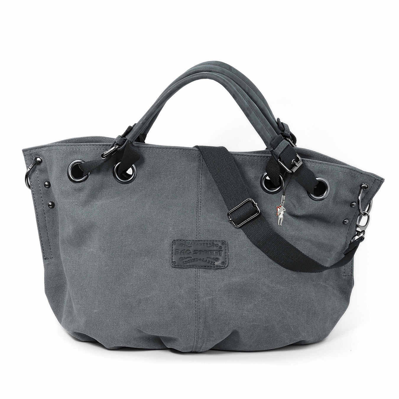 Bag Street Tasche Beuteltasche Damenhandtasche Canvas grau 45x18x32 OTJ213K