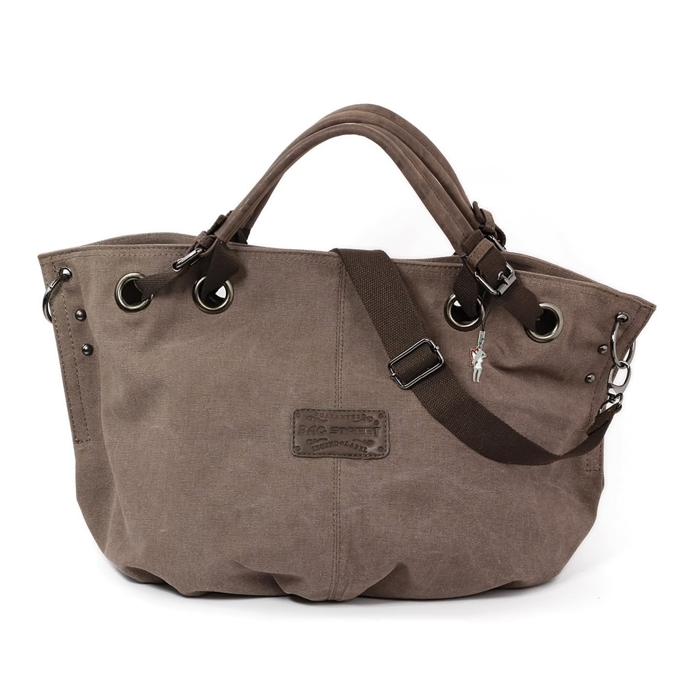 Bag Street Tasche Beuteltasche Damenhandtasche Canvas braun 45x18x32 OTJ213N