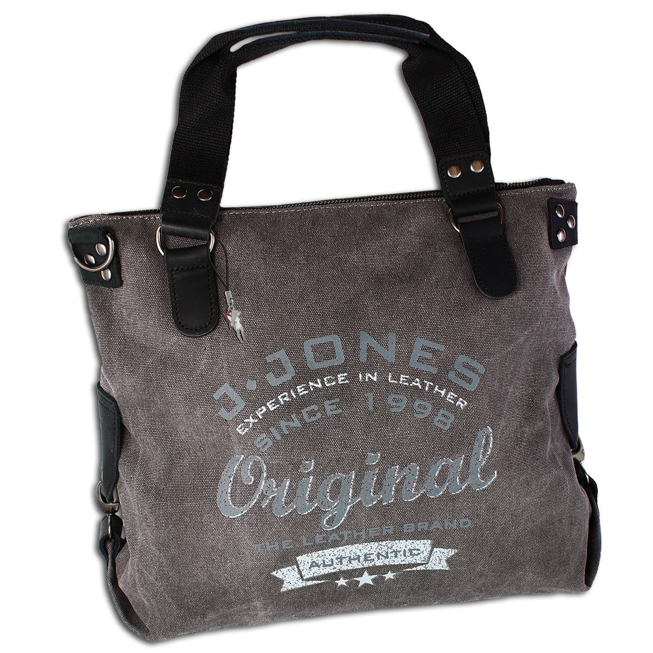 Jennifer Jones Vintage grau Shopper Canvas Leder Damen OTJ240K