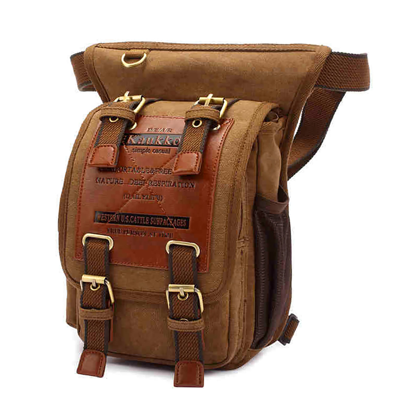DrachenLeder Tasche Gürteltasche Herren Damen Canvas khaki braun 18x8x25 cm OTK201N