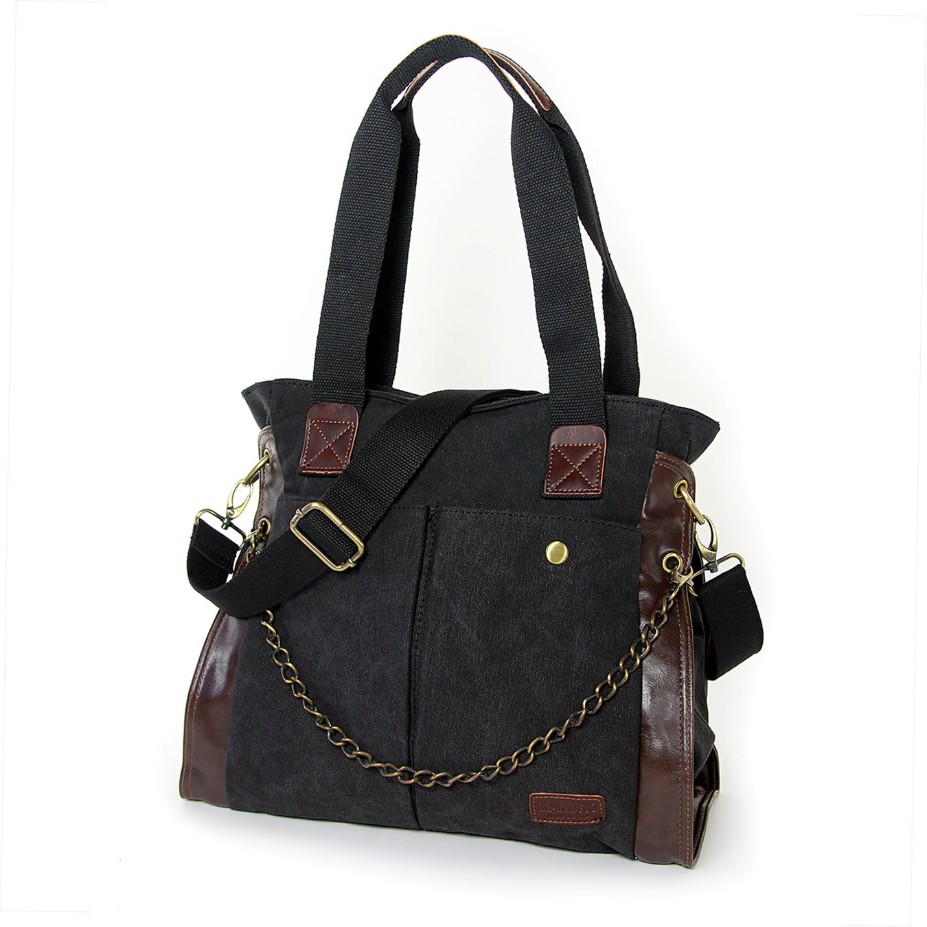 Manoro Tasche Henkeltasche Damen Canvas schwarz 36x13x33 OTK214S