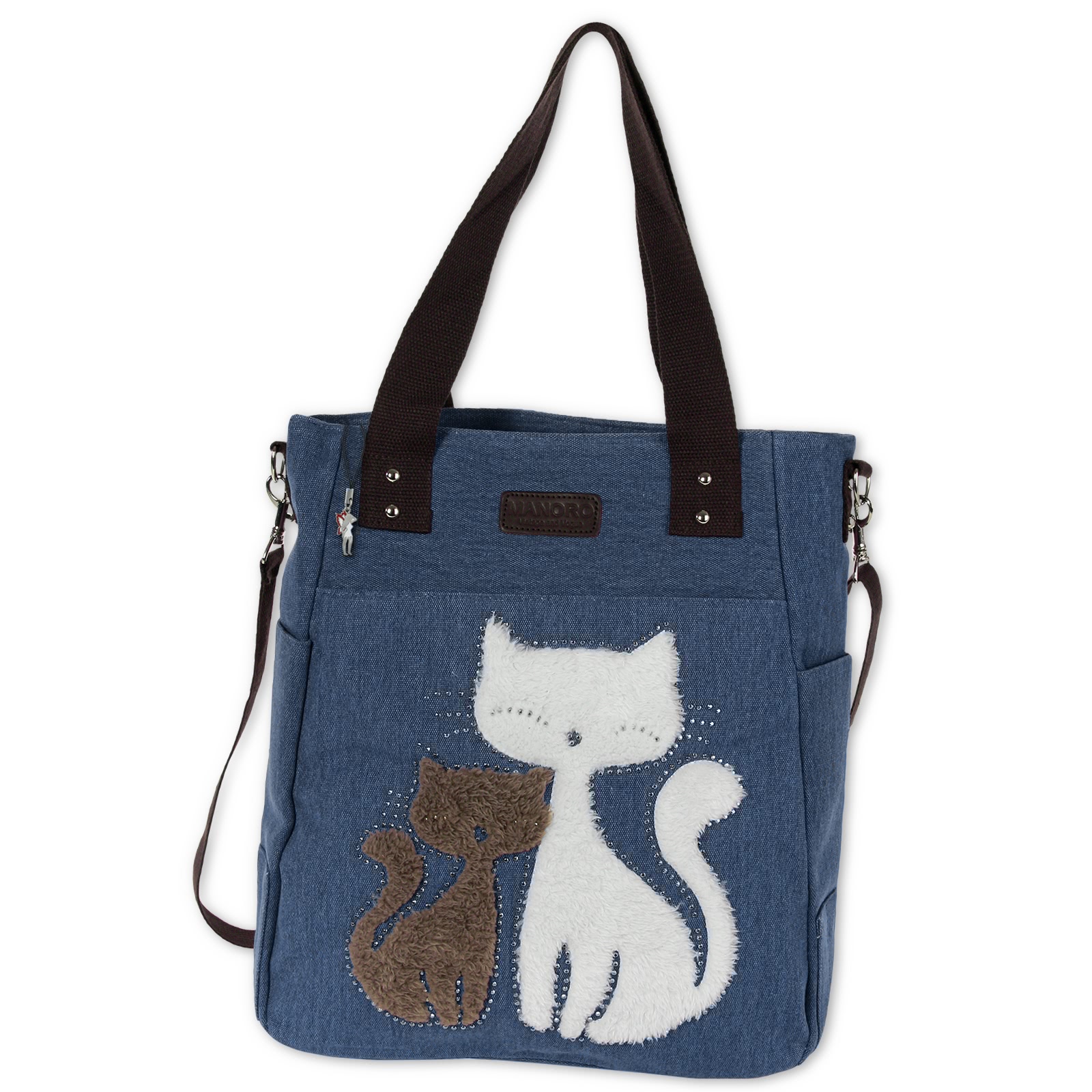 Manoro Tasche Henkeltasche Shopper Cats Damen Canvas blau 33x11x37 cm OTK217B