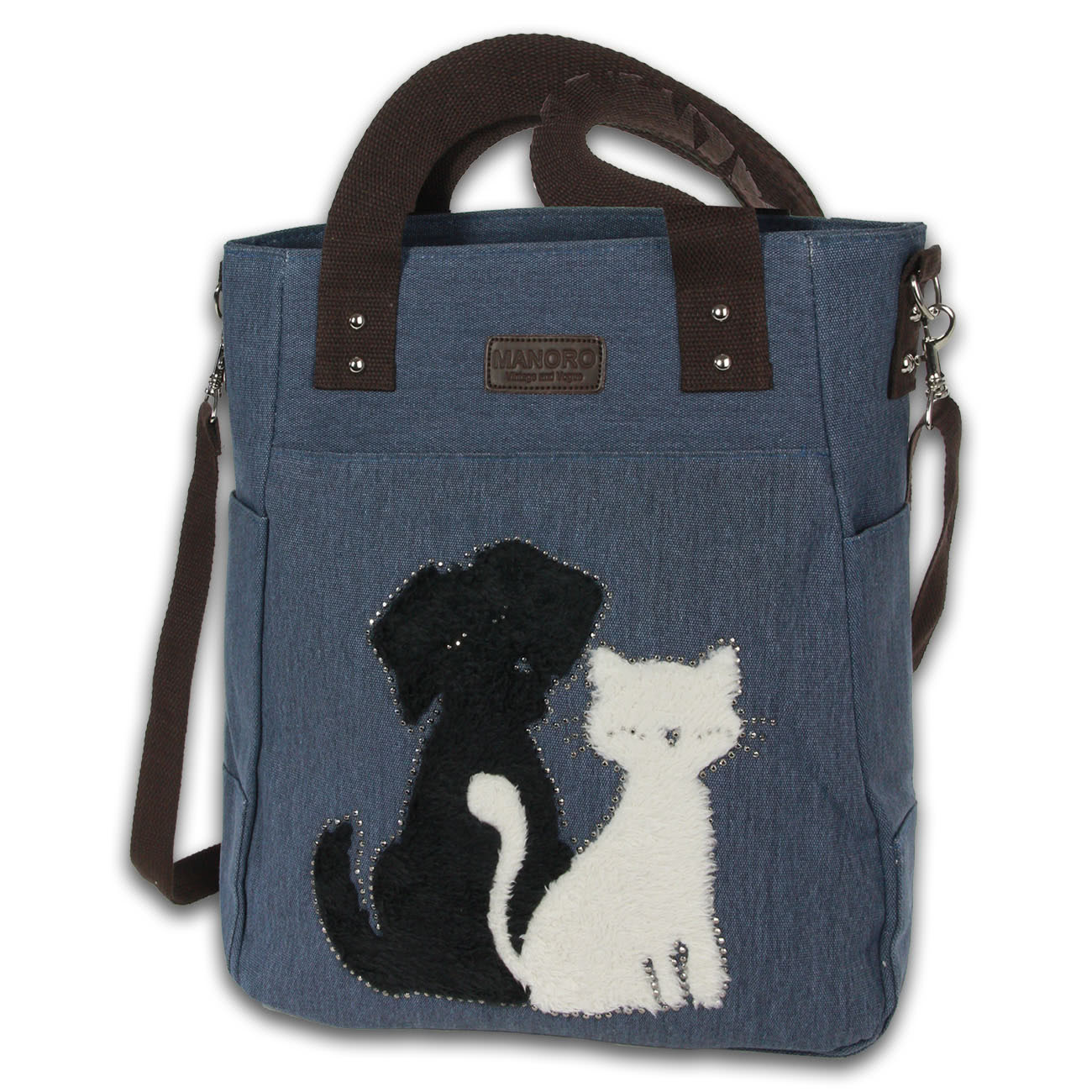 Manoro Handtasche Henkeltasche Shopper Damen Canvas blau 32x10x36 cm OTK221B
