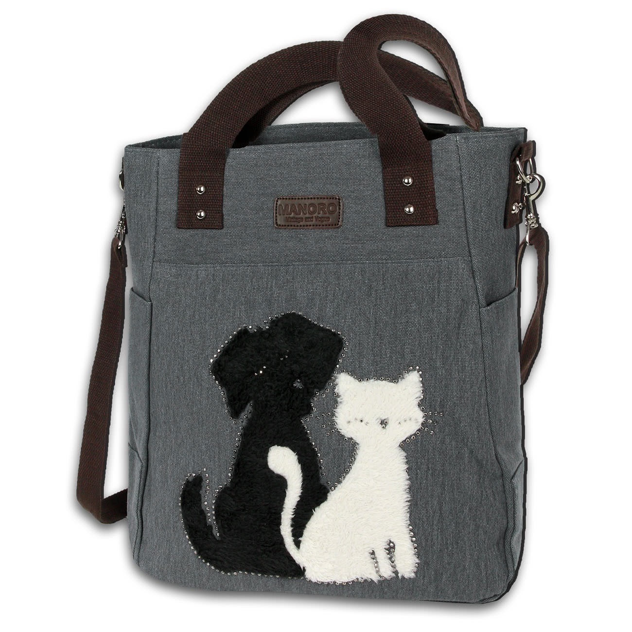 Manoro Handtasche Henkeltasche Shopper Damen Canvas grau 32x10x36 cm OTK221K