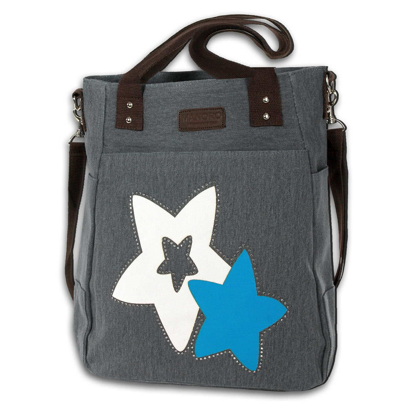 Manoro Tasche Henkeltasche Shopper Stars Damen Canvas grau 32x10x36 cm OTK222K