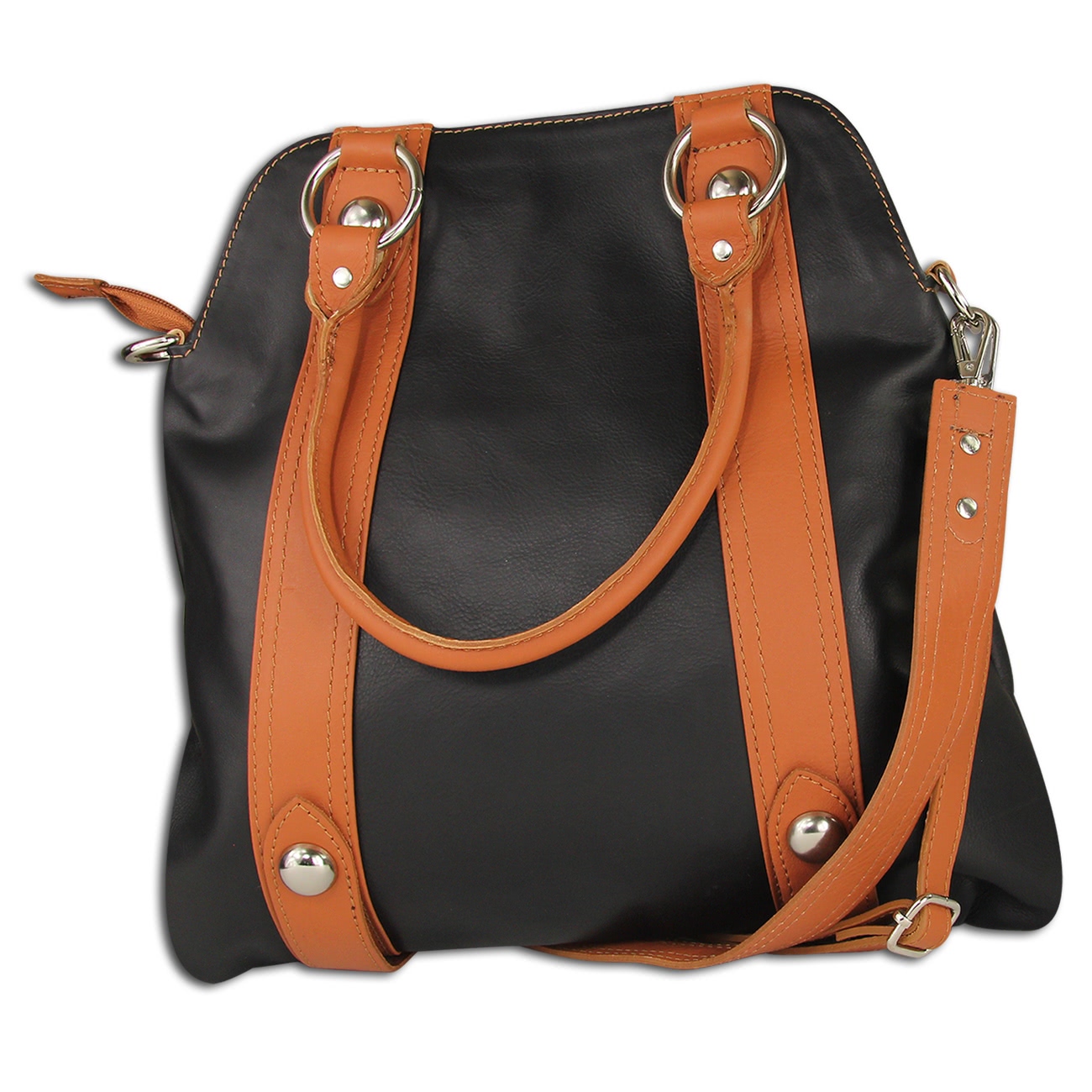 Toscanto Leder schwarz hellbraun Tasche Henkeltasche Damen OTT132SS