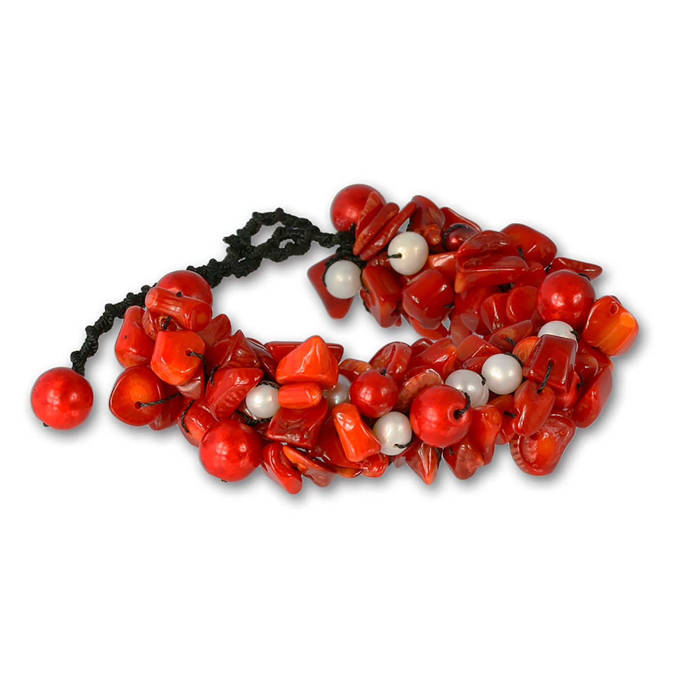SilberDream Damen Armband rot weiß Perlen 20cm Geflecht Textil Stein SDA015