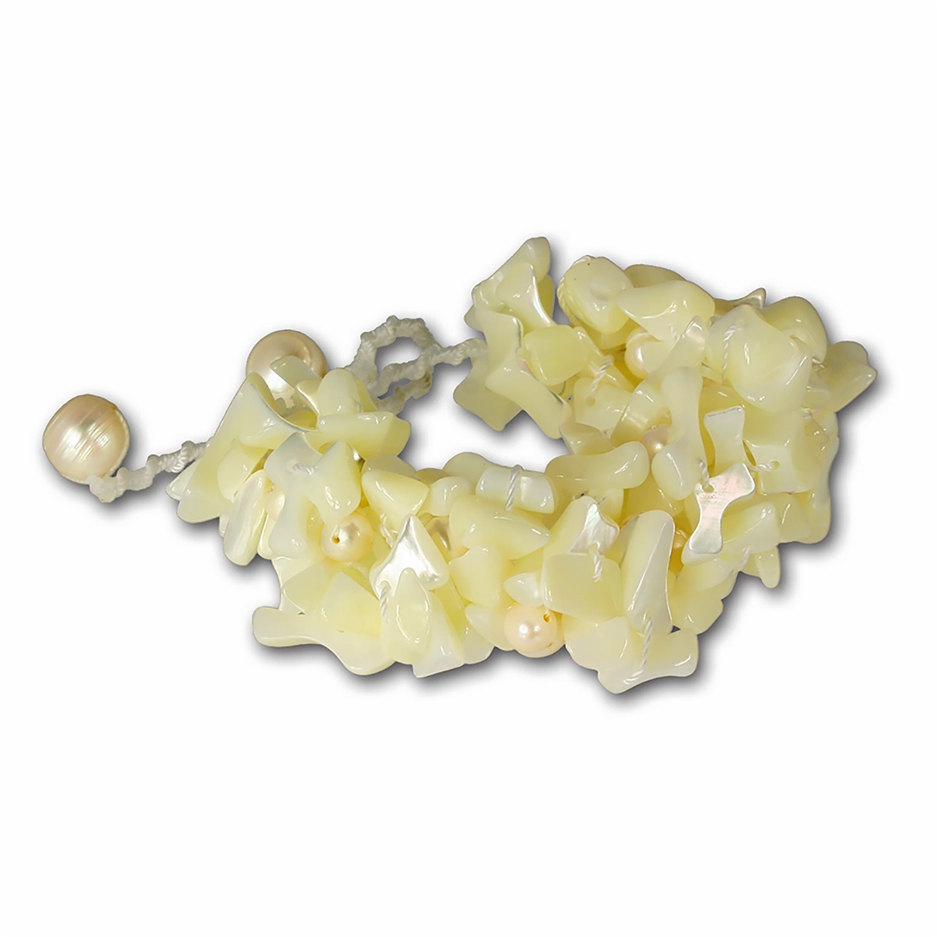 SilberDream Damen Armband weiß braun Perlen 17cm Geflecht Textil Stein SDA017