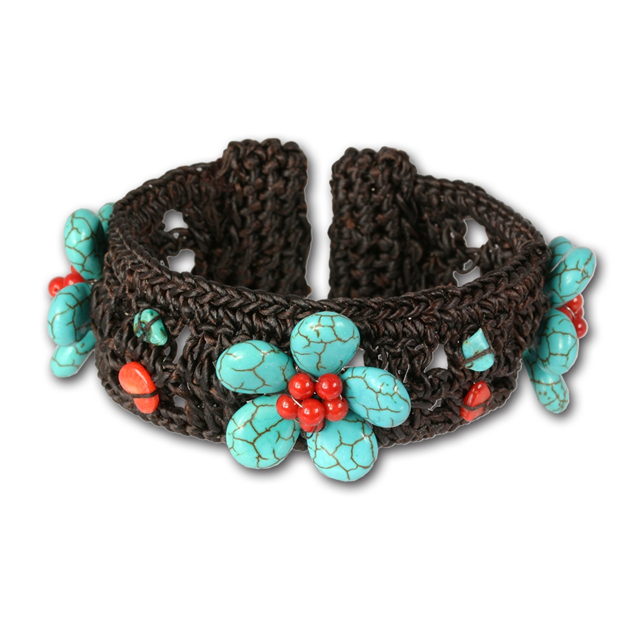 SilberDream Damen Armband türkis rot Blume Textil Stein Schmuck SDA022