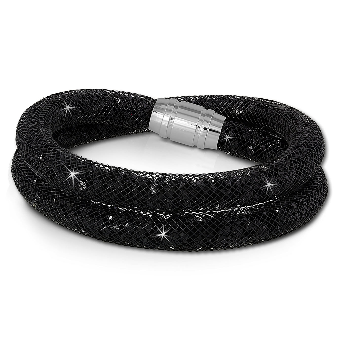 SilberDream Damen Armband schwarz 18cm Mini Kristalle Edelstahl Nylon SDA051S9