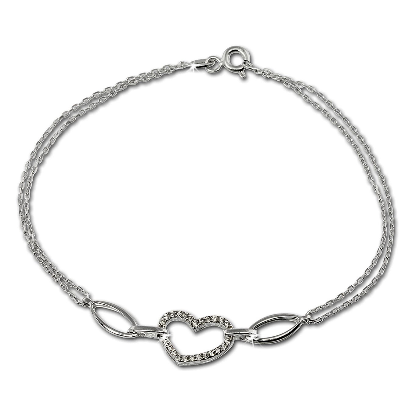 SilberDream Damen Armband silber weiß glitzer 19cm Herz 925er Schmuck SDA423W